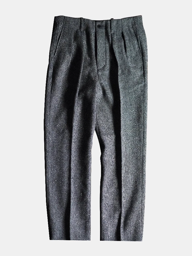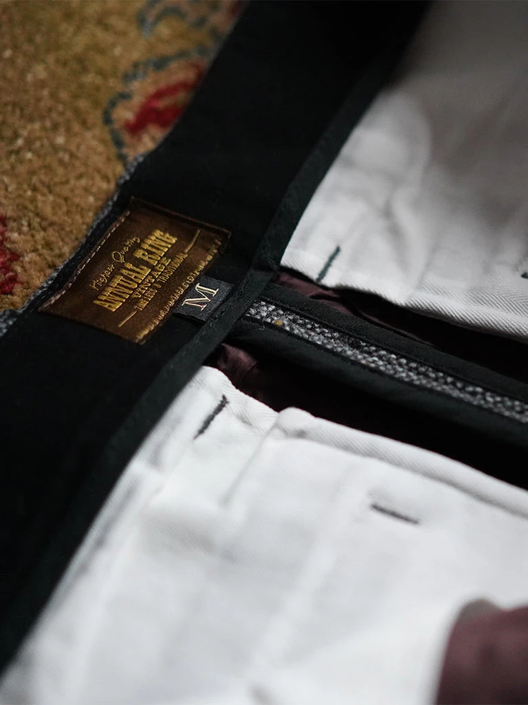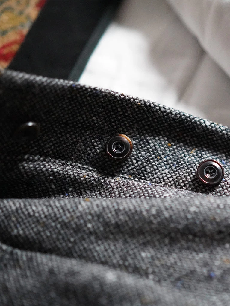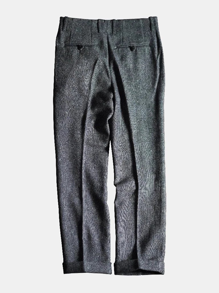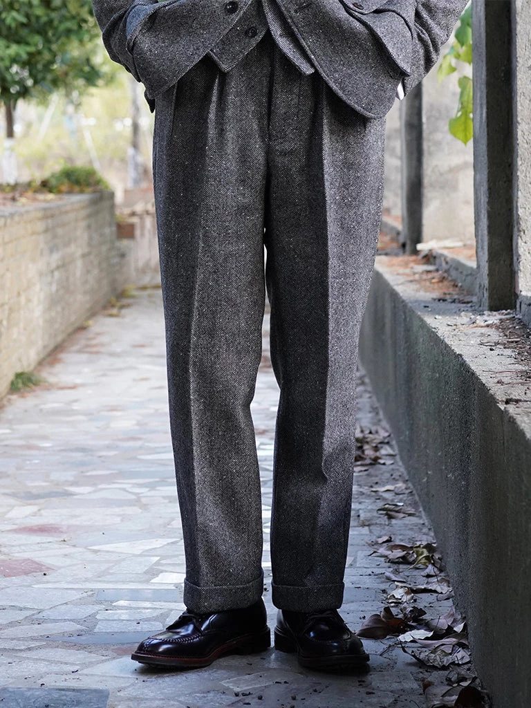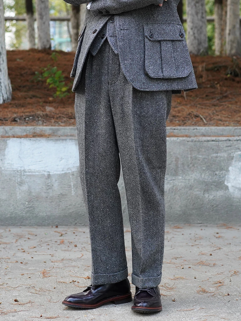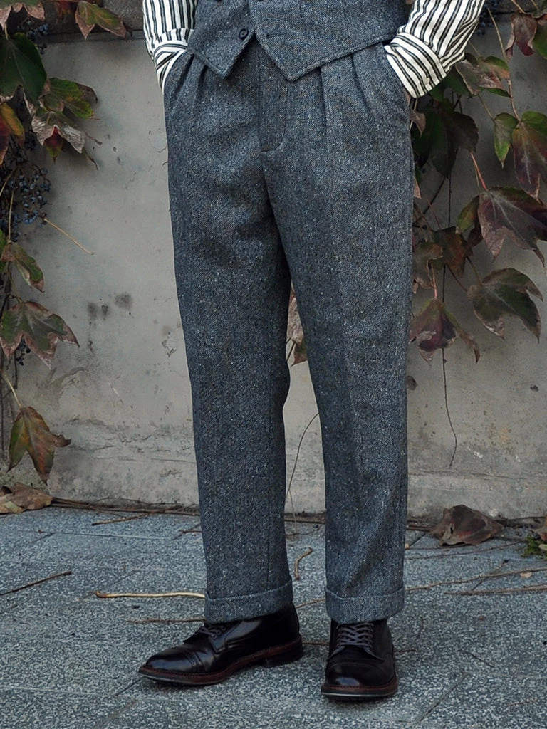 Since the tweed fabric is thicker, we changed the waist lining to a high-density cotton twill fabric, which adds comfort and retains the classic design. There is plenty of room in the thigh, and the straight leg is slightly loose, making it more suitable for daily wear. The two pleats design is a classic detail, was common in the 19th and early 20th centuries. And not flipping the belt loops down like a Hollywood Waistband design, it was placed at the regular waist place, ensures the use of heavy tweed fabric without sacrificing its basic comfort.