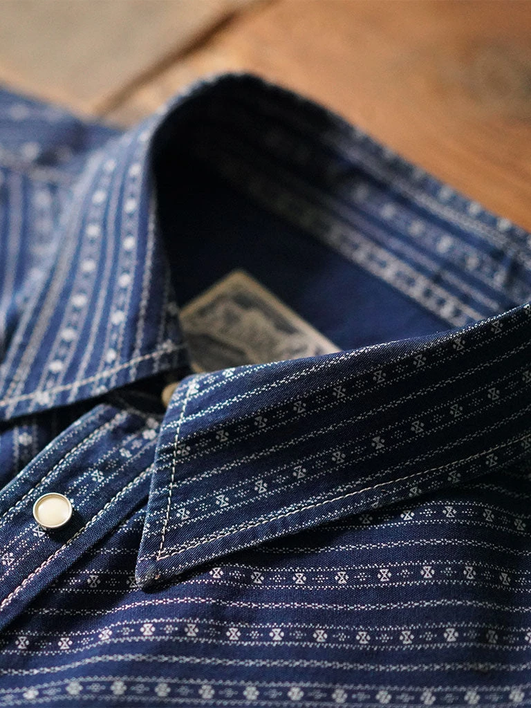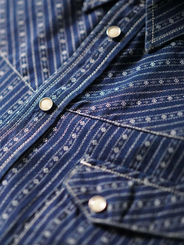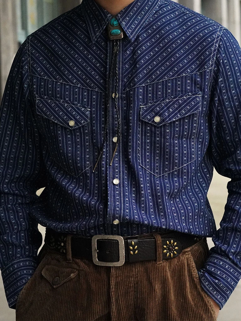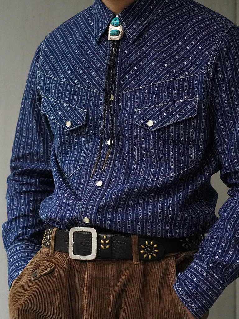 Inspired by the 1950s US western shirt, and use indigo discharge print fabric.