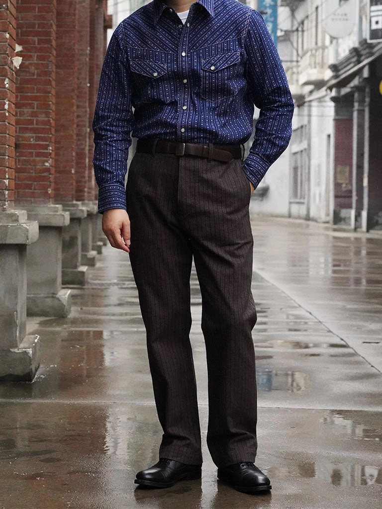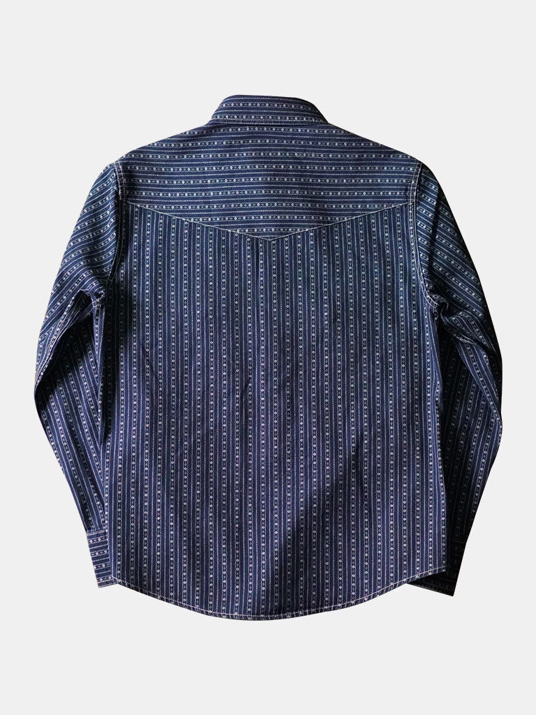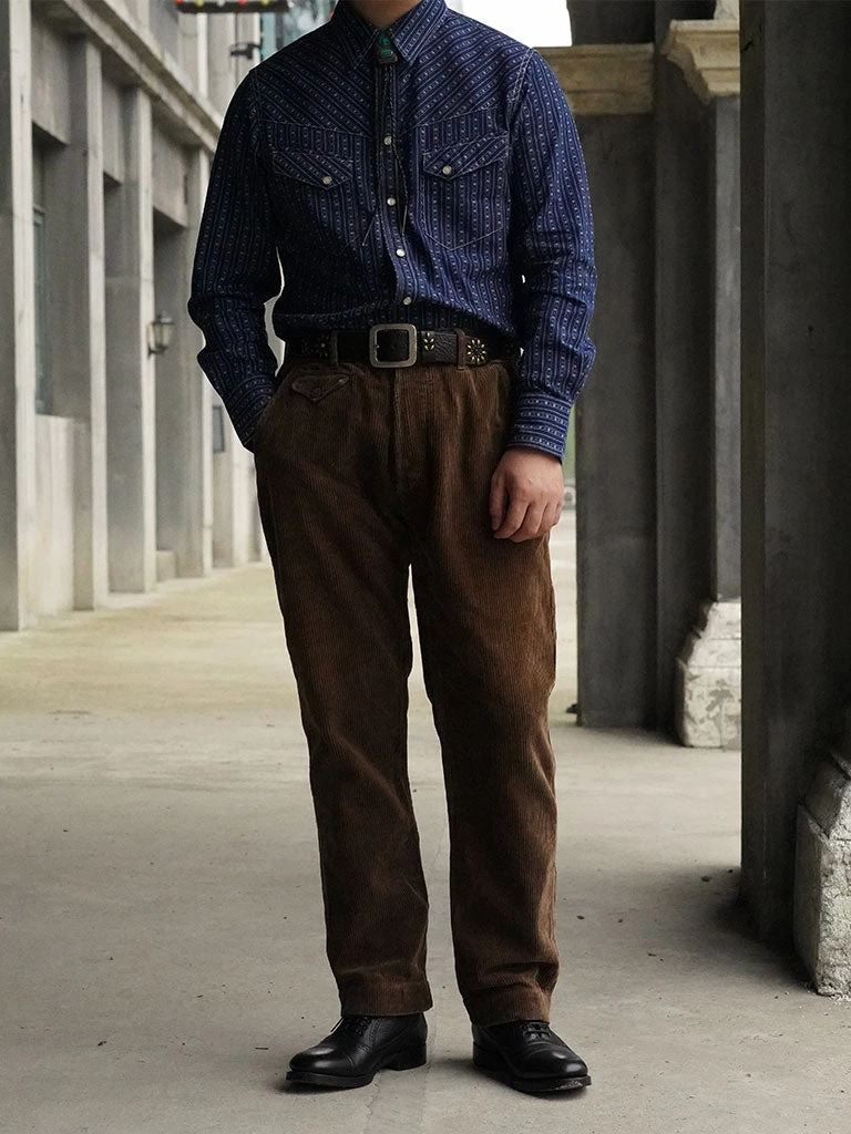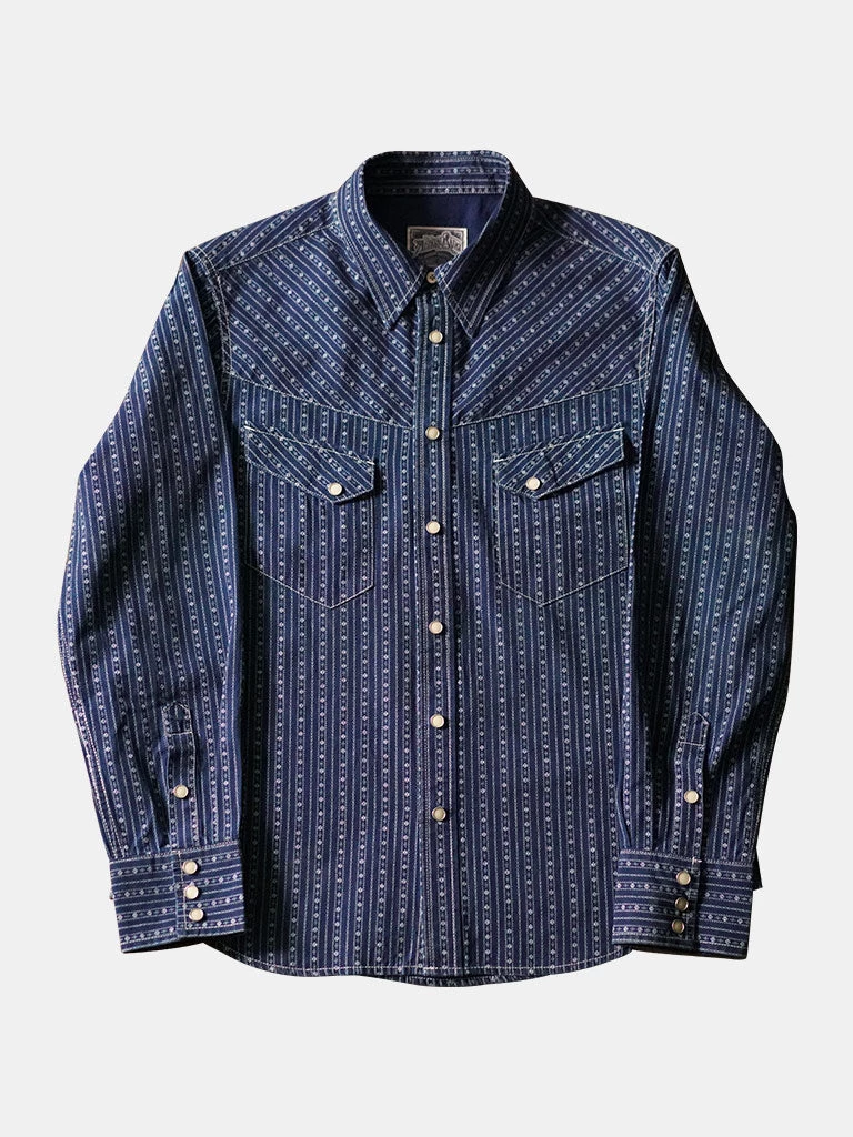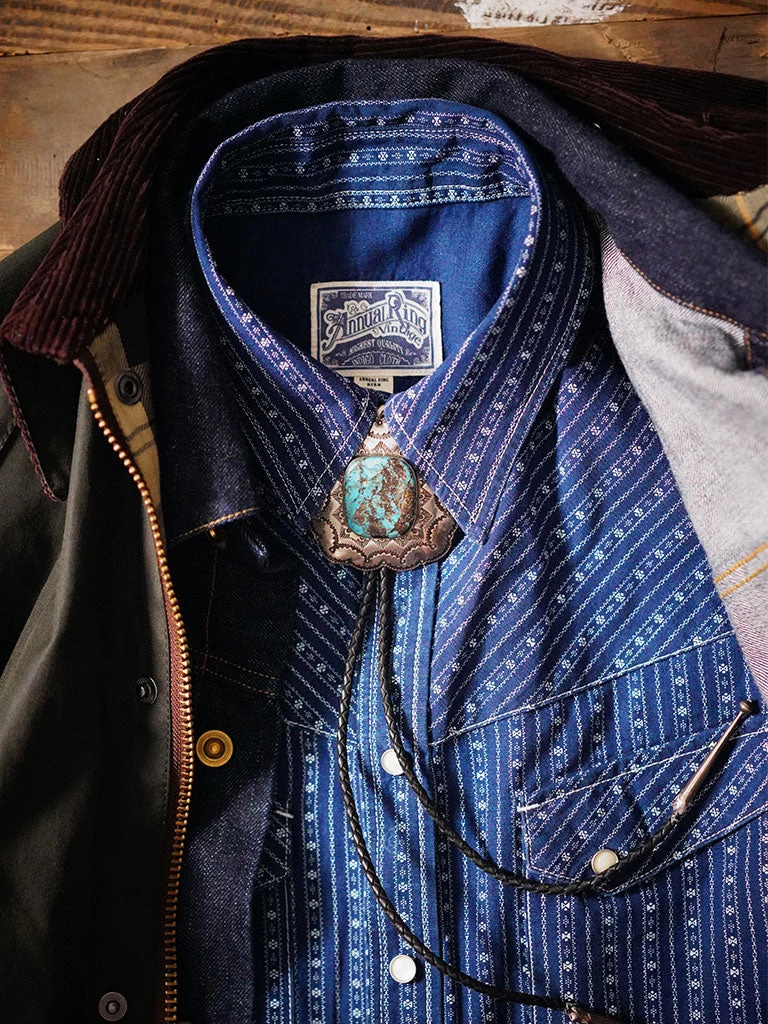 Inspired by the 1950s US western shirt, and use indigo discharge print fabric.
