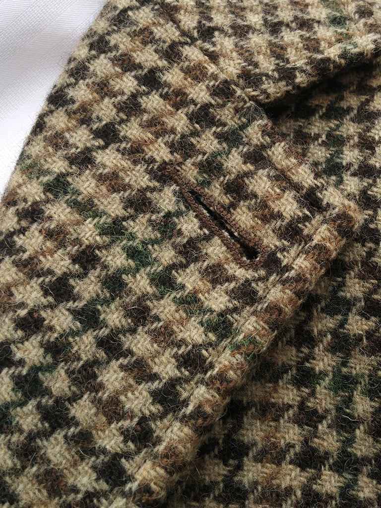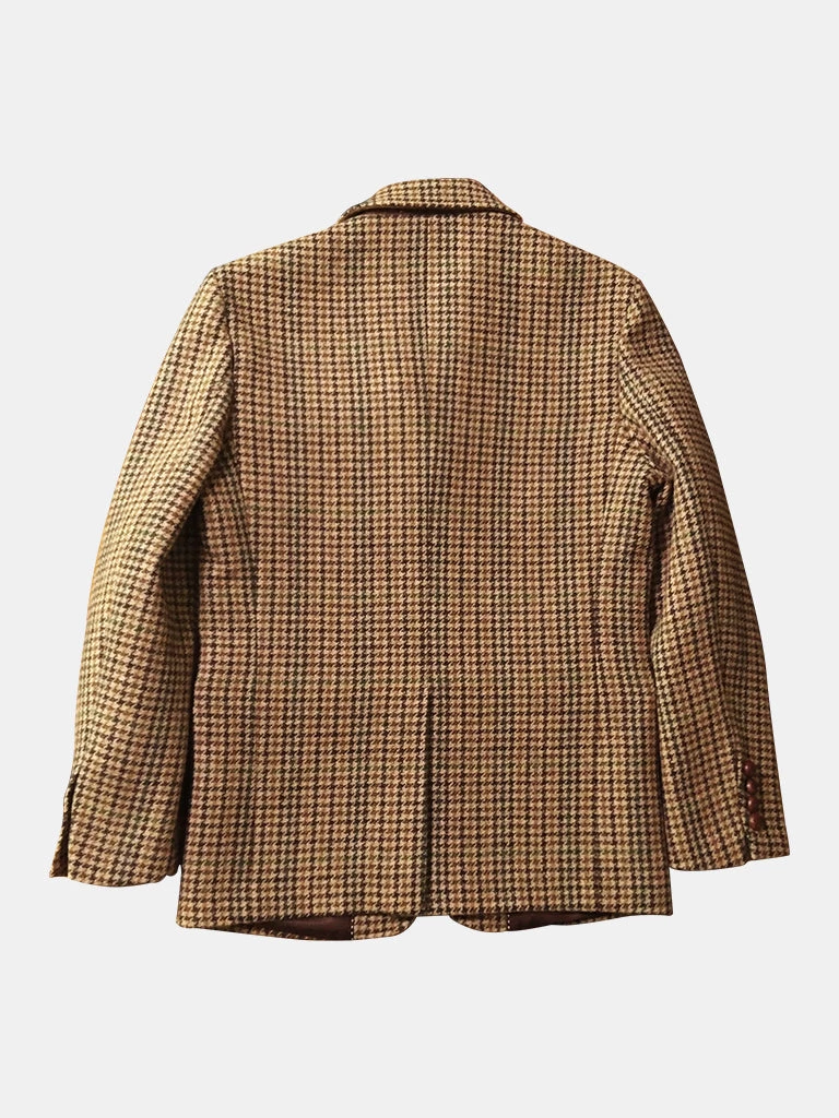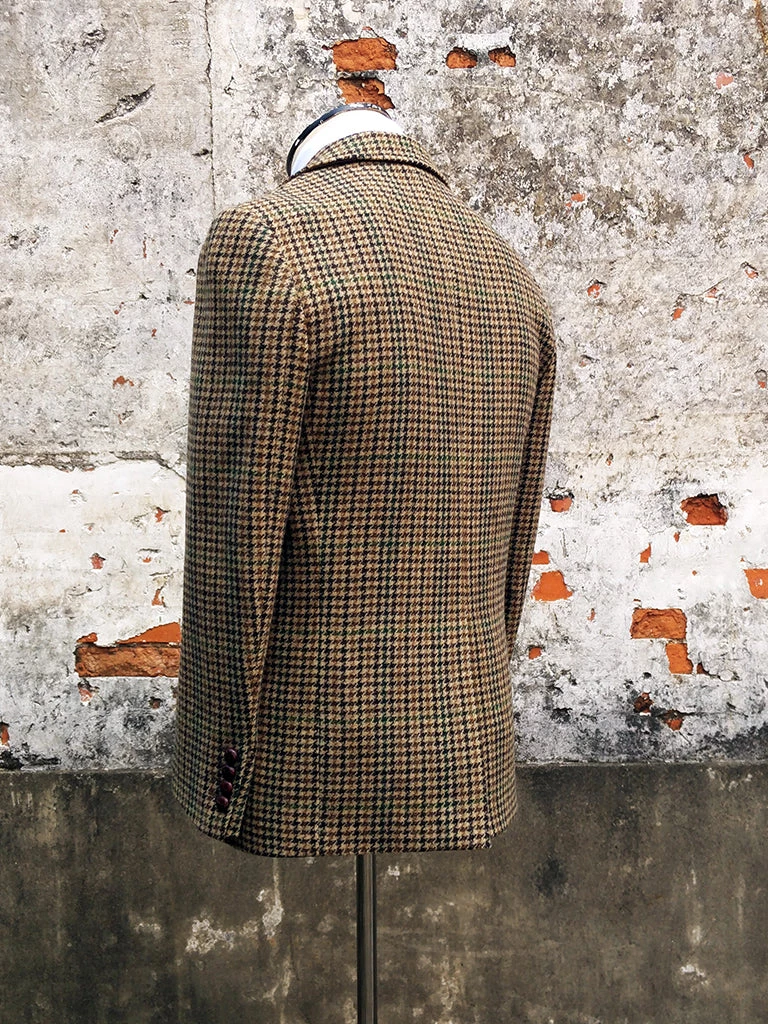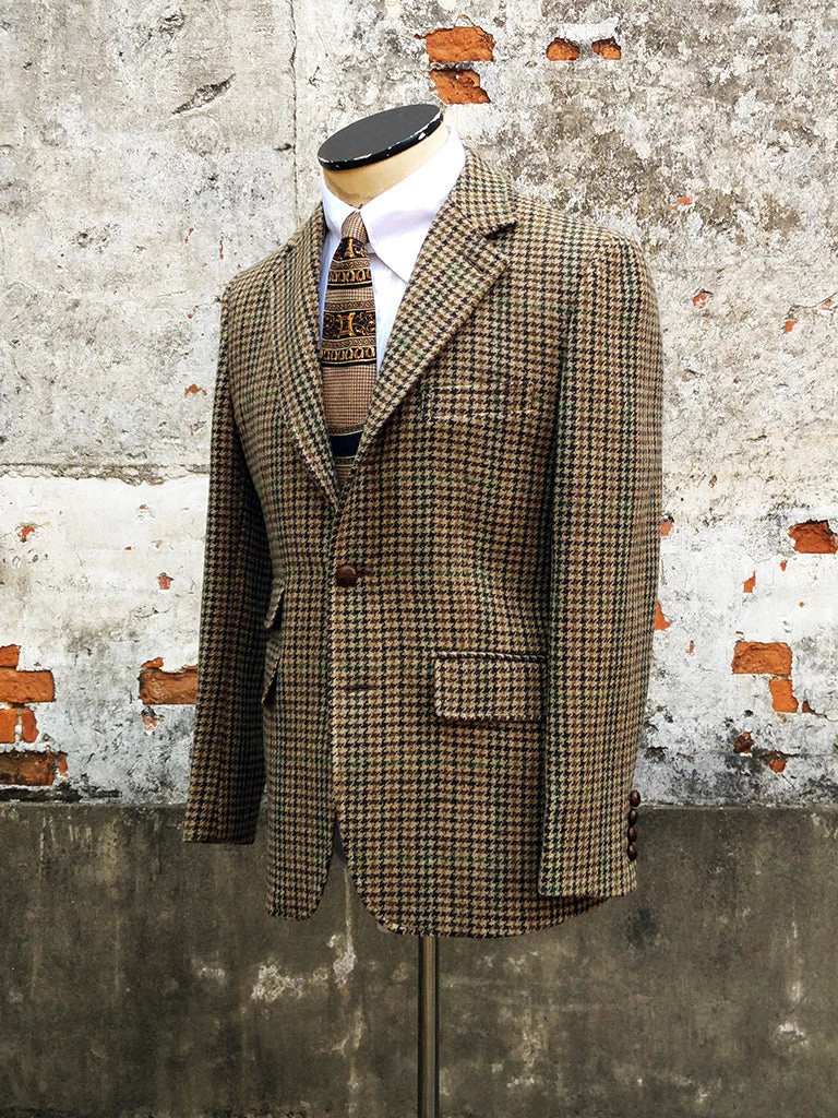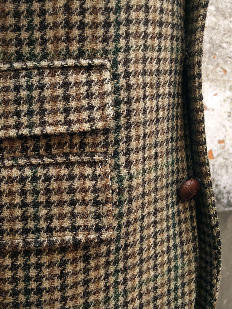 This jacket is made of Hound’s Tooth Check tweed, which was popular in the 1950s, in a classic American three-button blazer style, and with hand-woven cowhide buttons.