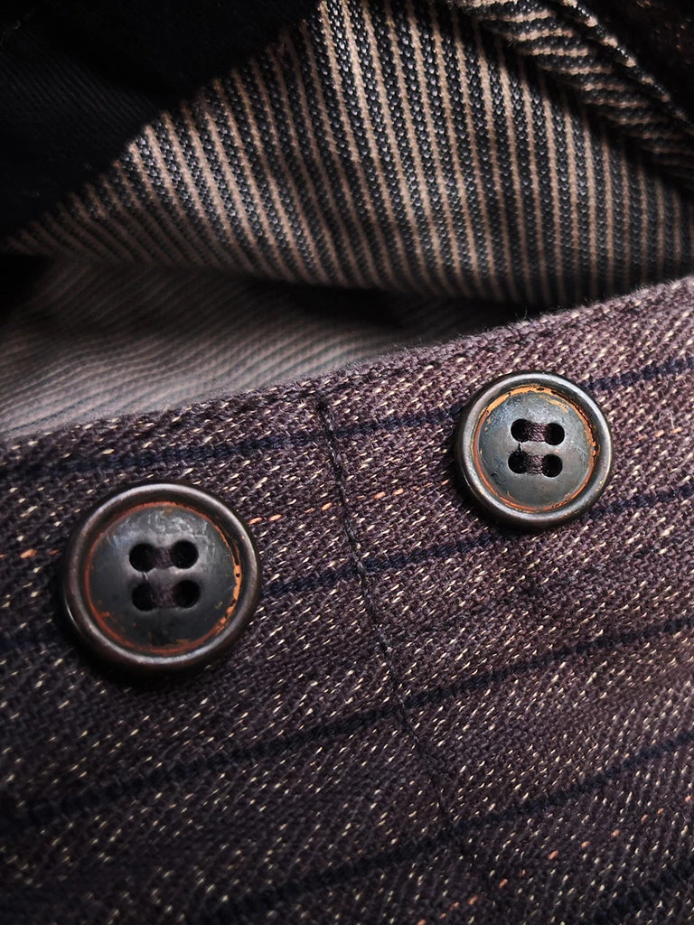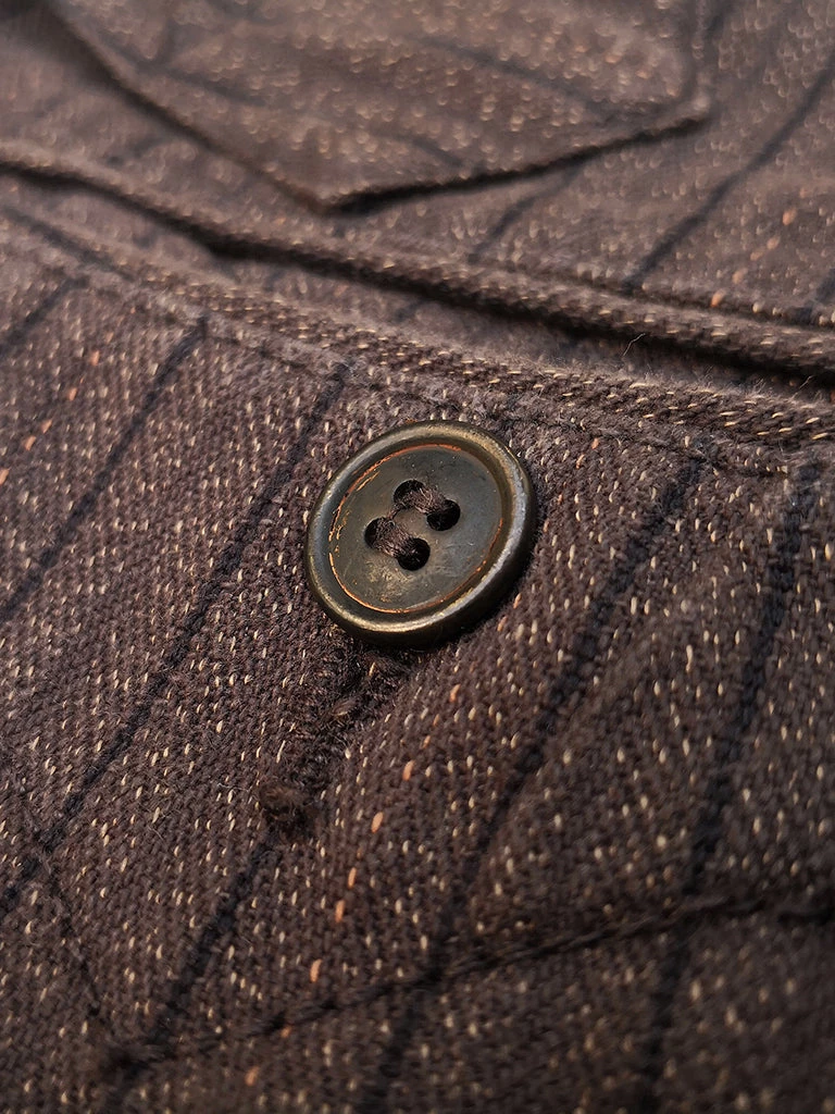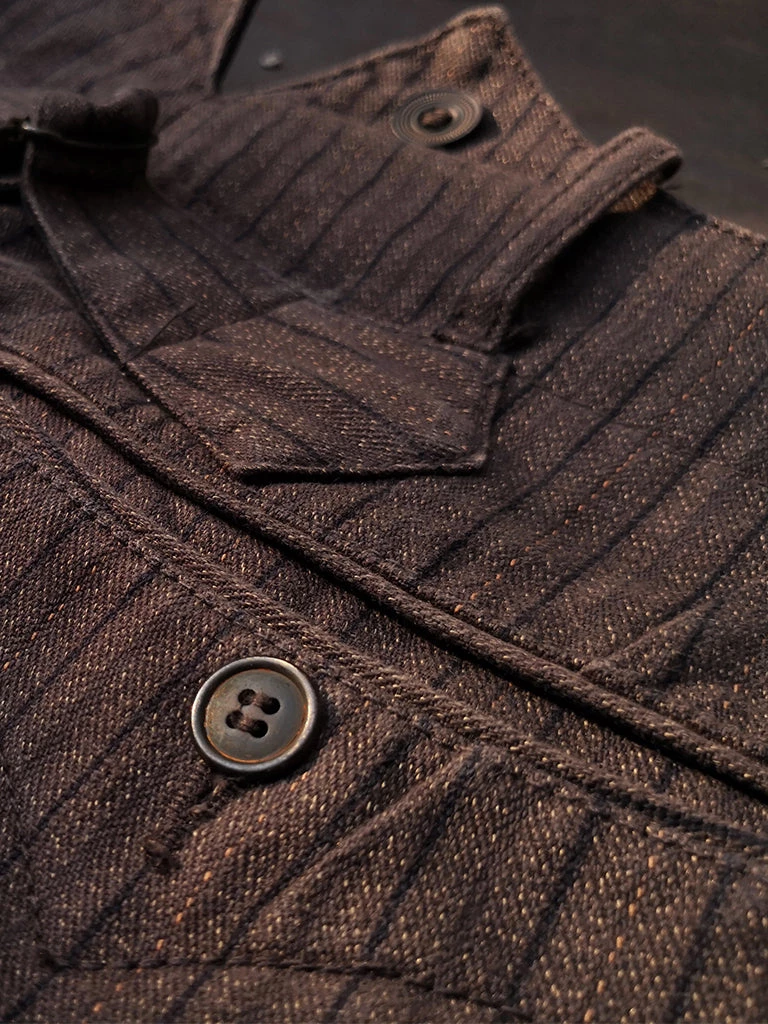 - 13 oz grey-brown striped salt & pepper chambray yarn-dyed fabric made in Japan, 100% cotton