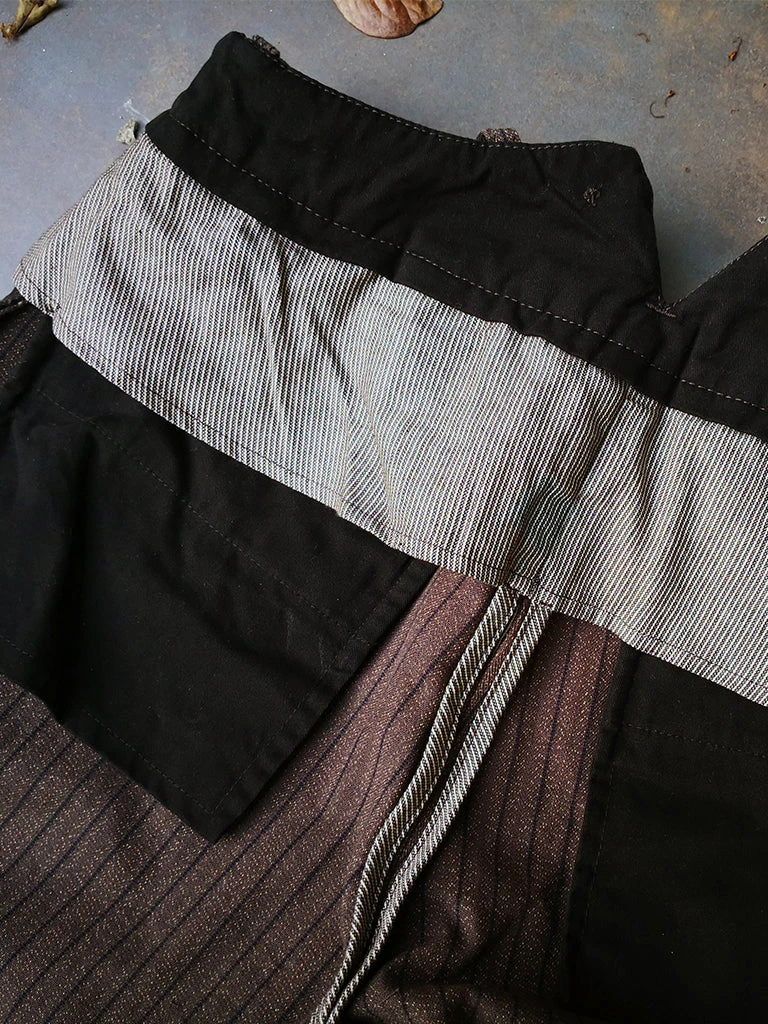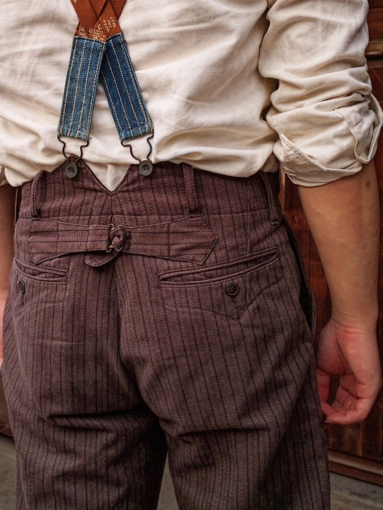 This prototype is taken from the daily pants of the European immigrants in the 1920-1930s. Most of these trousers lack “YOKE”, that is, there is no triangle stitching cut under the back waist. The waist of the trousers has buttons that can be used to tie the suspender, and there is an adjustment belt in the middle of the back waist to adjust the waist and hip circumference. It’s also called “Buckleback”.