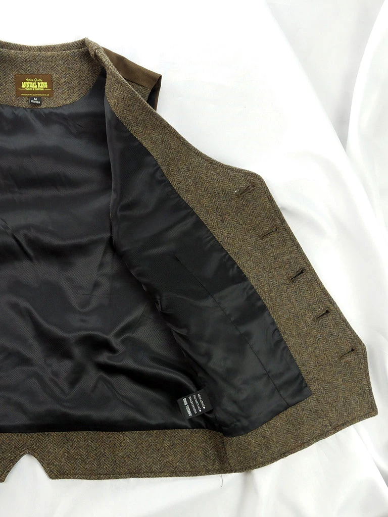 Annual Ring Greyish-Green Herringbone Tweed Vest