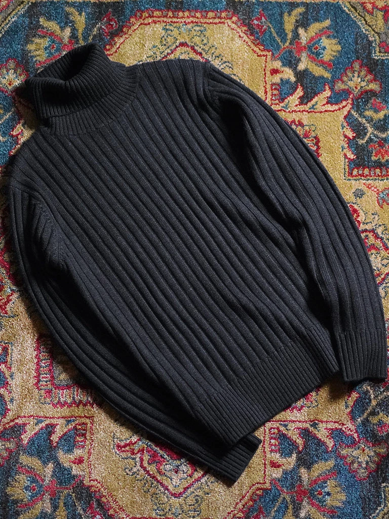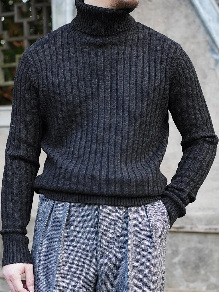This sweater is made of 100% extra fine merino wool, a classic turtleneck design, using the jacquard thread weaving process.