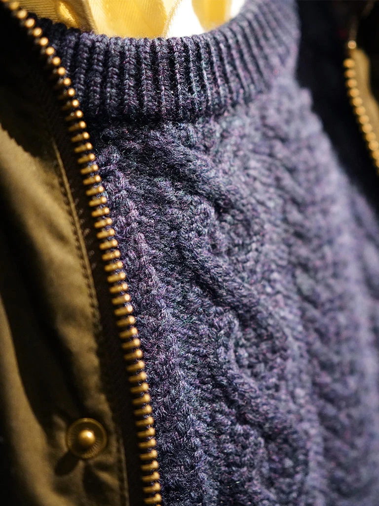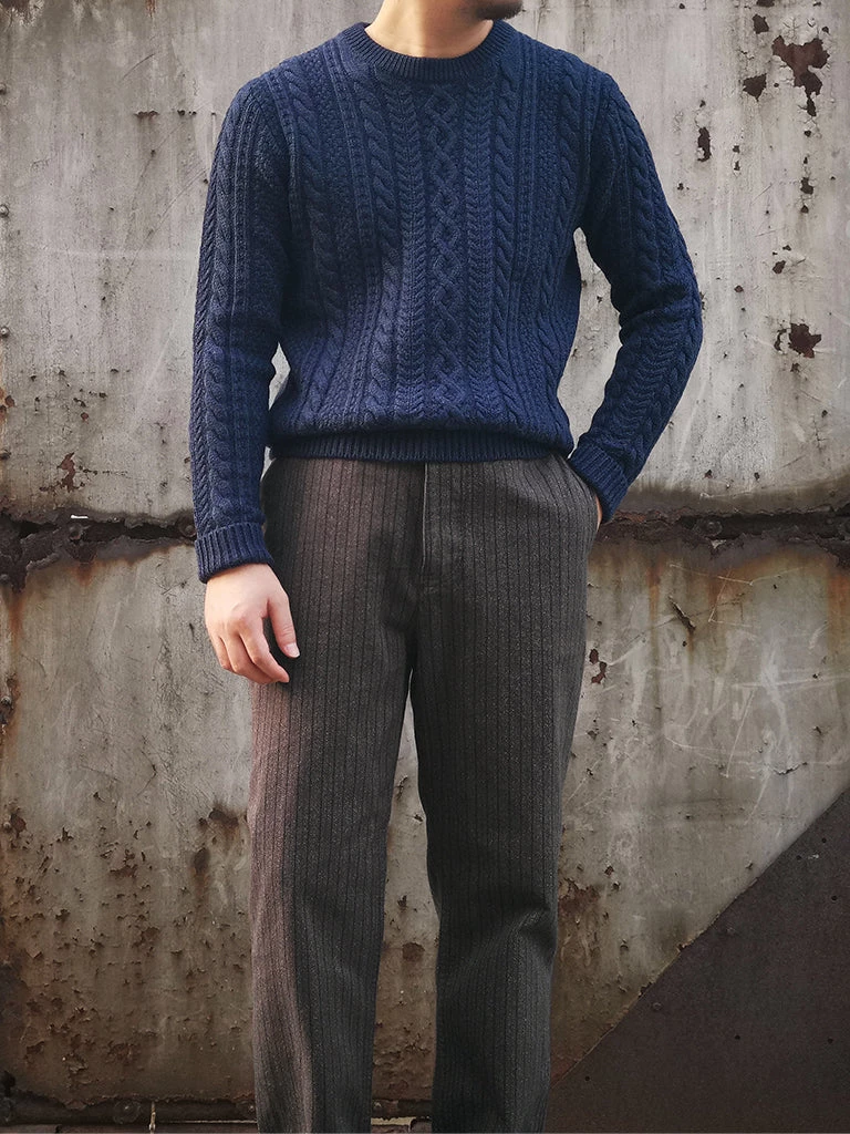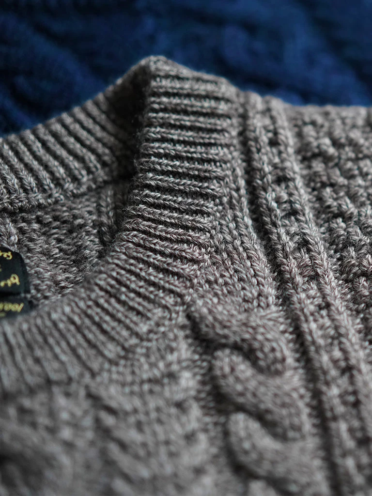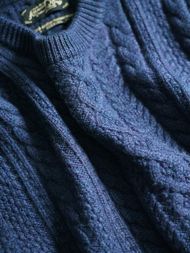 This sweater is a classic Aran Sweater with six different stitching techniques, made of 100% extrafine merino wool.