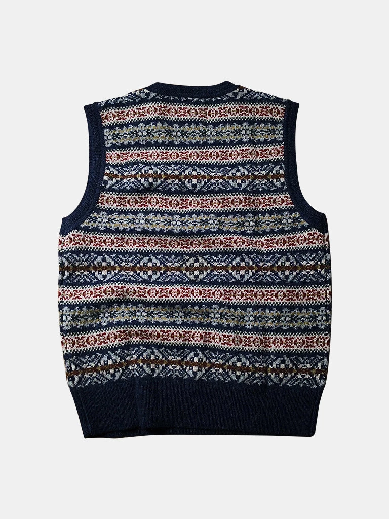 This sweater vest reinterprets the timeless motif with Shetland wool.