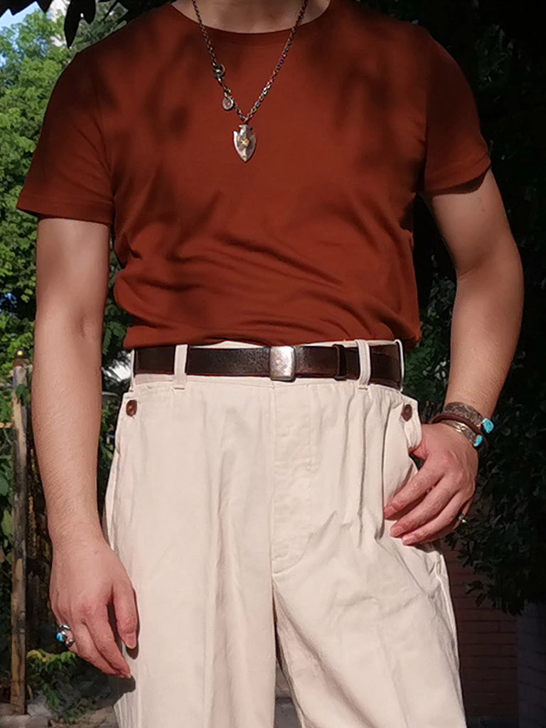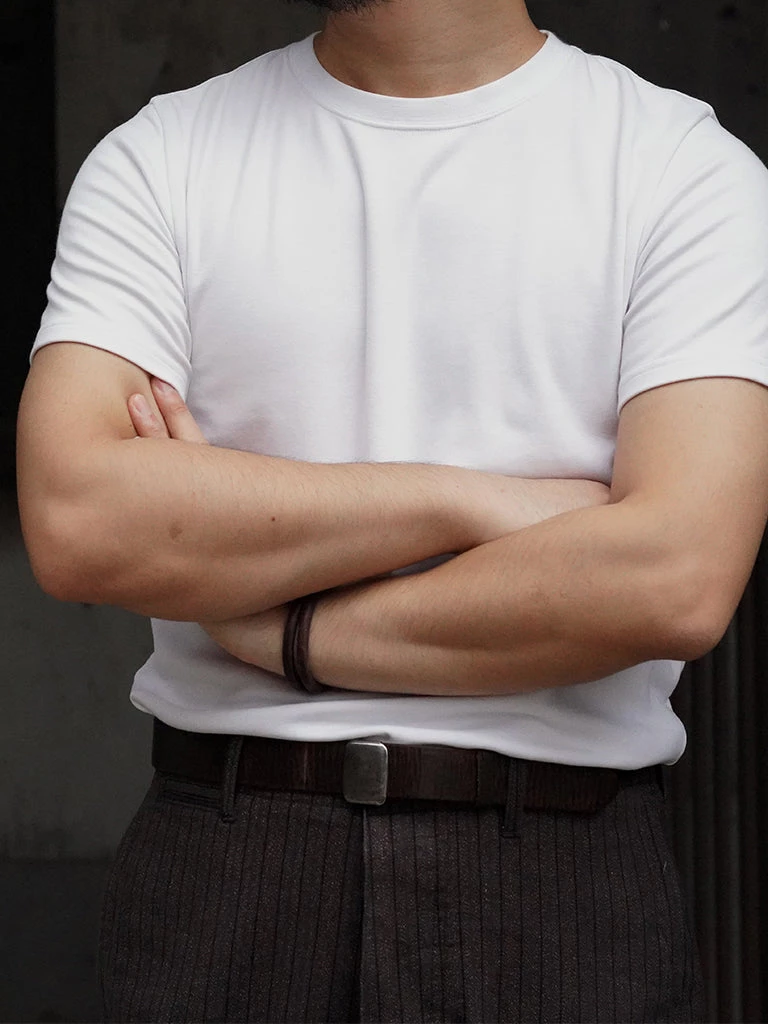 It’s based on the popular American-style crewneck T-shirt in the 1950s. This is a very comfortable T-shirt, made of 96% long-staple cotton, 4% spandex. Very soft, breathable, and not easily deformed.