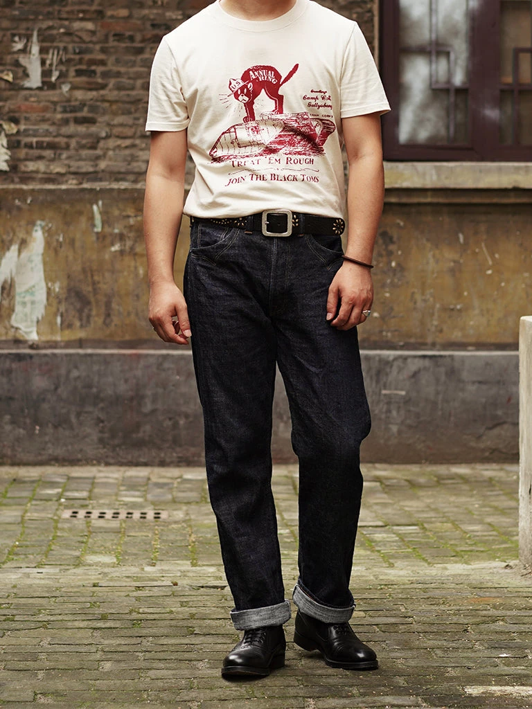 The monochrome print on the shirt is a reproduction of the “Black Toms” on an envelope from 1918. Although there is no rich color pattern, the simplified image is more interesting and memorable.