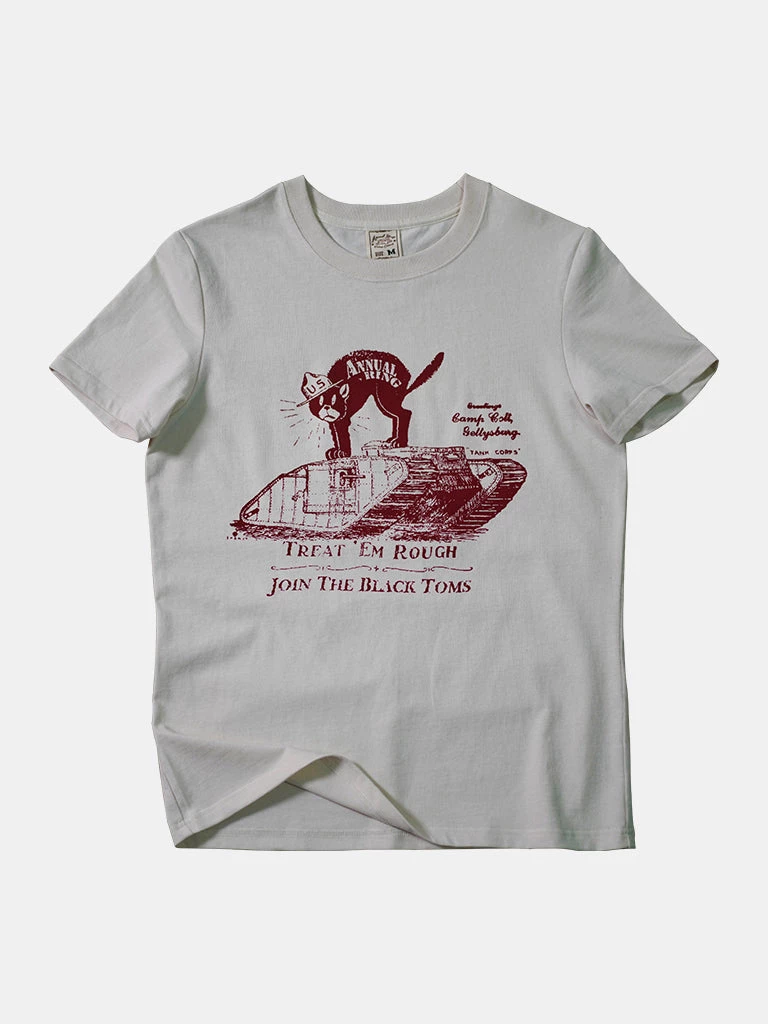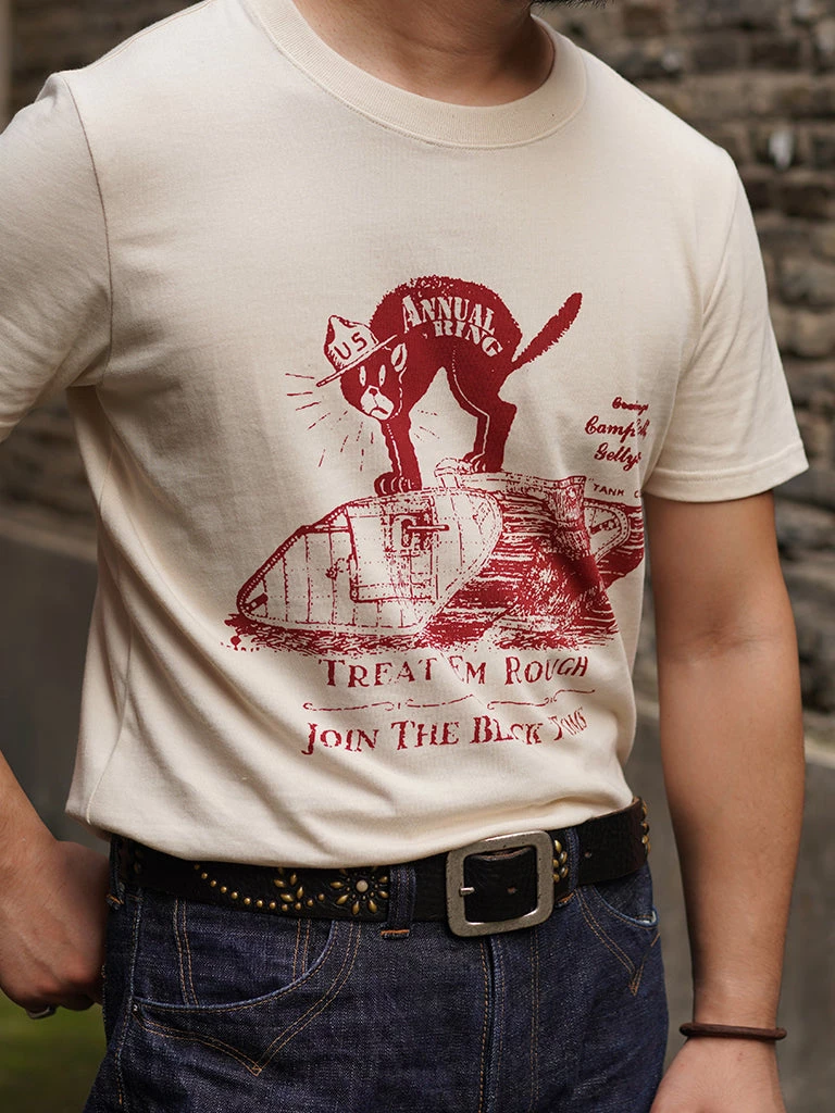 This printed T-shirt is based on the recruiting poster “Black Toms” of the US Army during WWI.