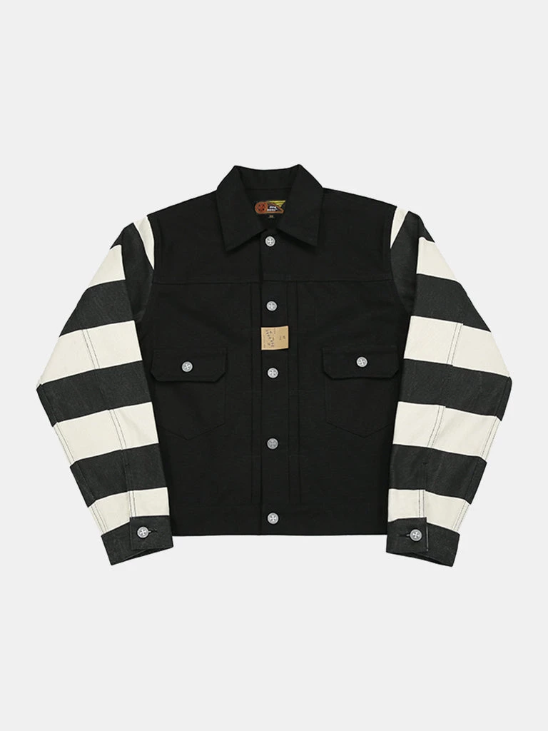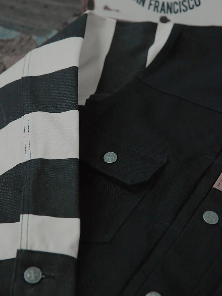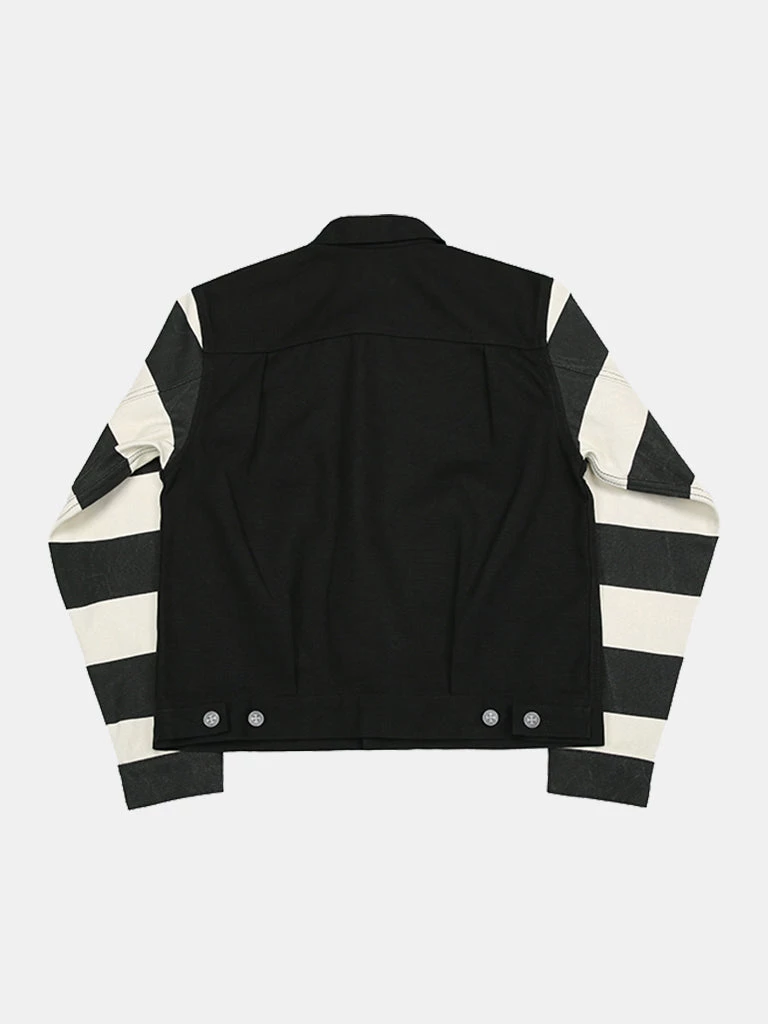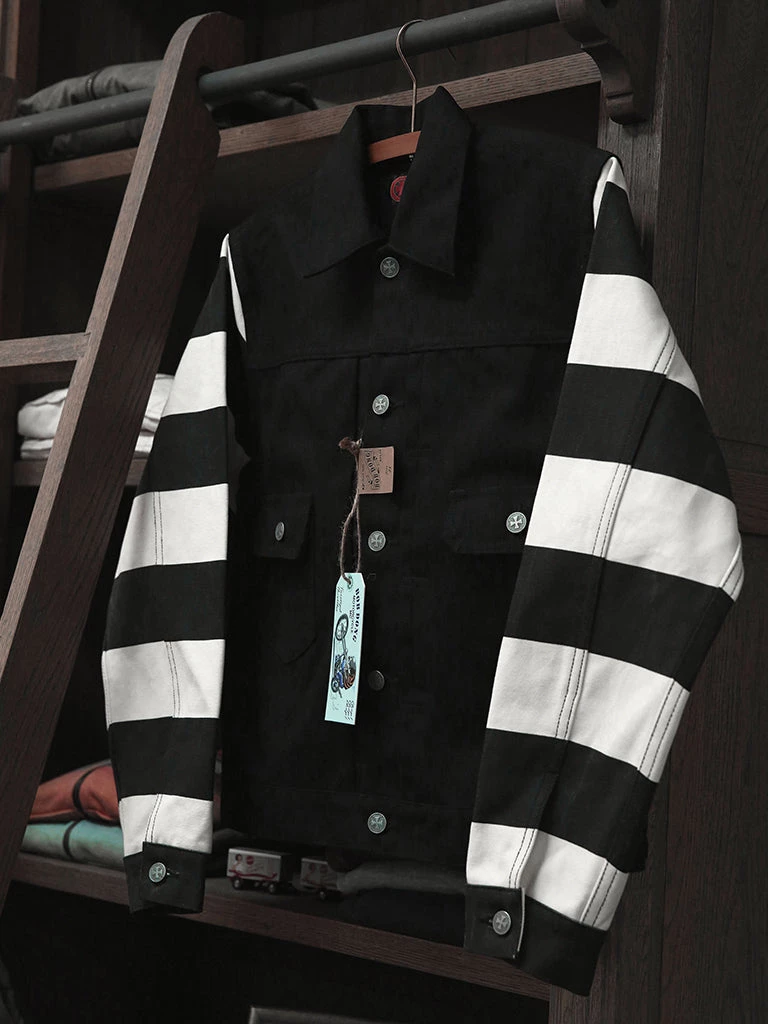 Inspired by the Type 2 jacket, made of 100% cotton canvas, the sleeves are printed in black and white stripes. The jacket is washed for a better vintage feel.