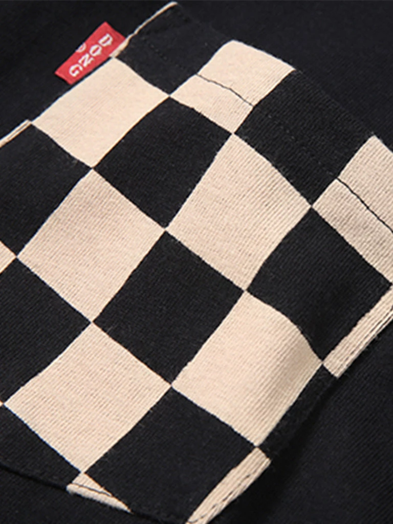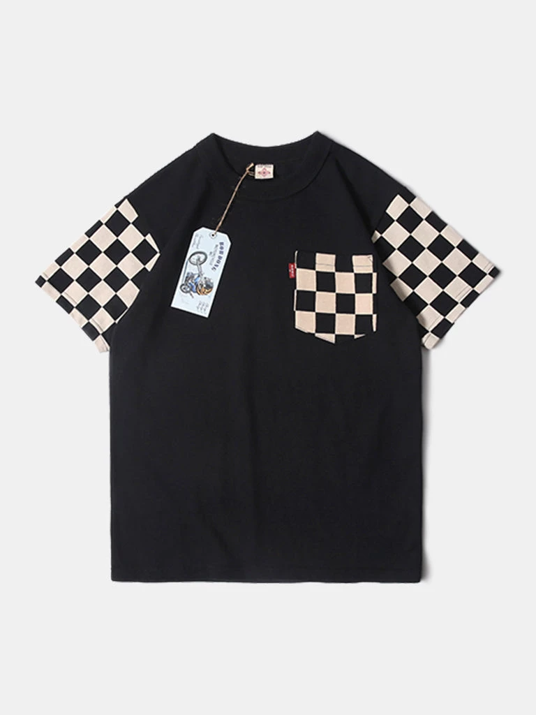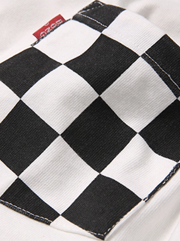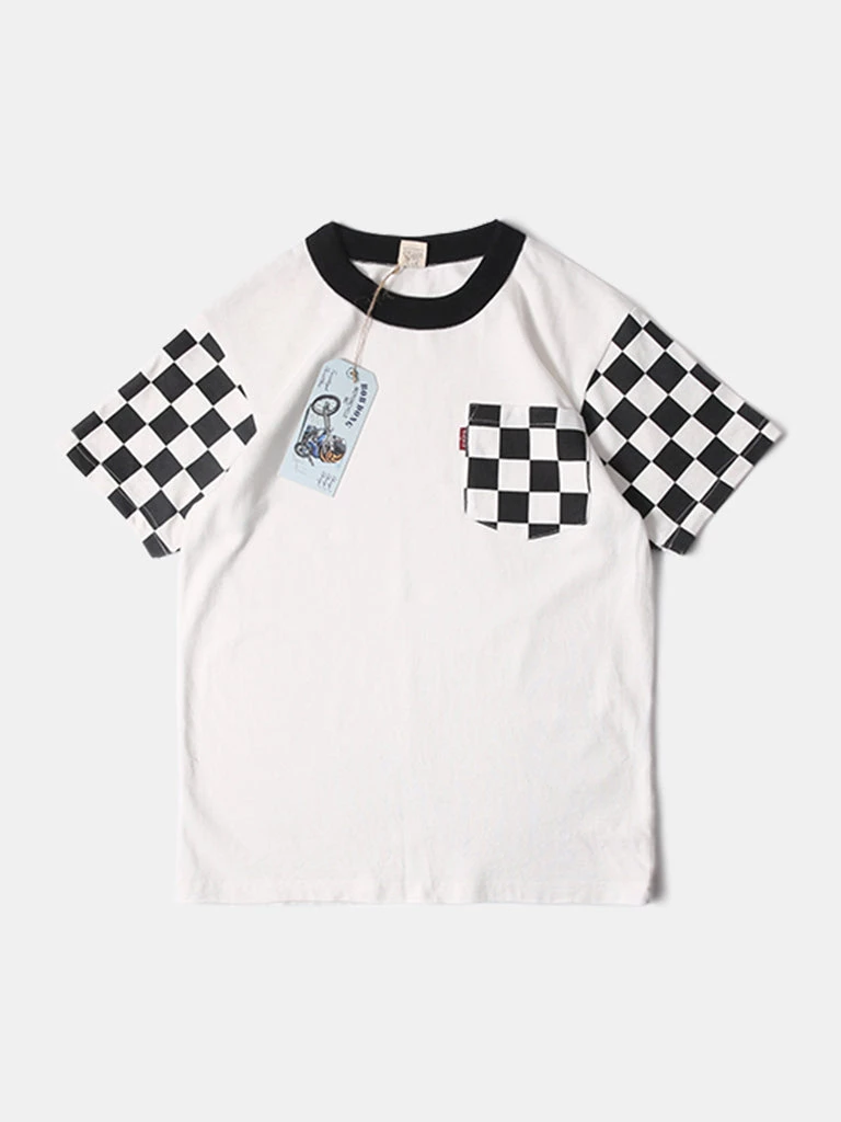 Bob Dong TOPS Check Flag Racing Track Style One Pocket T-Shirt – White