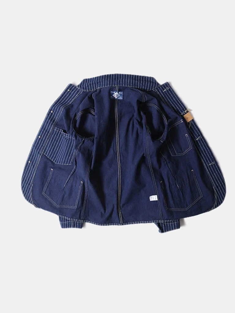 This is the reproduction of an old-time railroad work jacket. It made of 13oz denim.