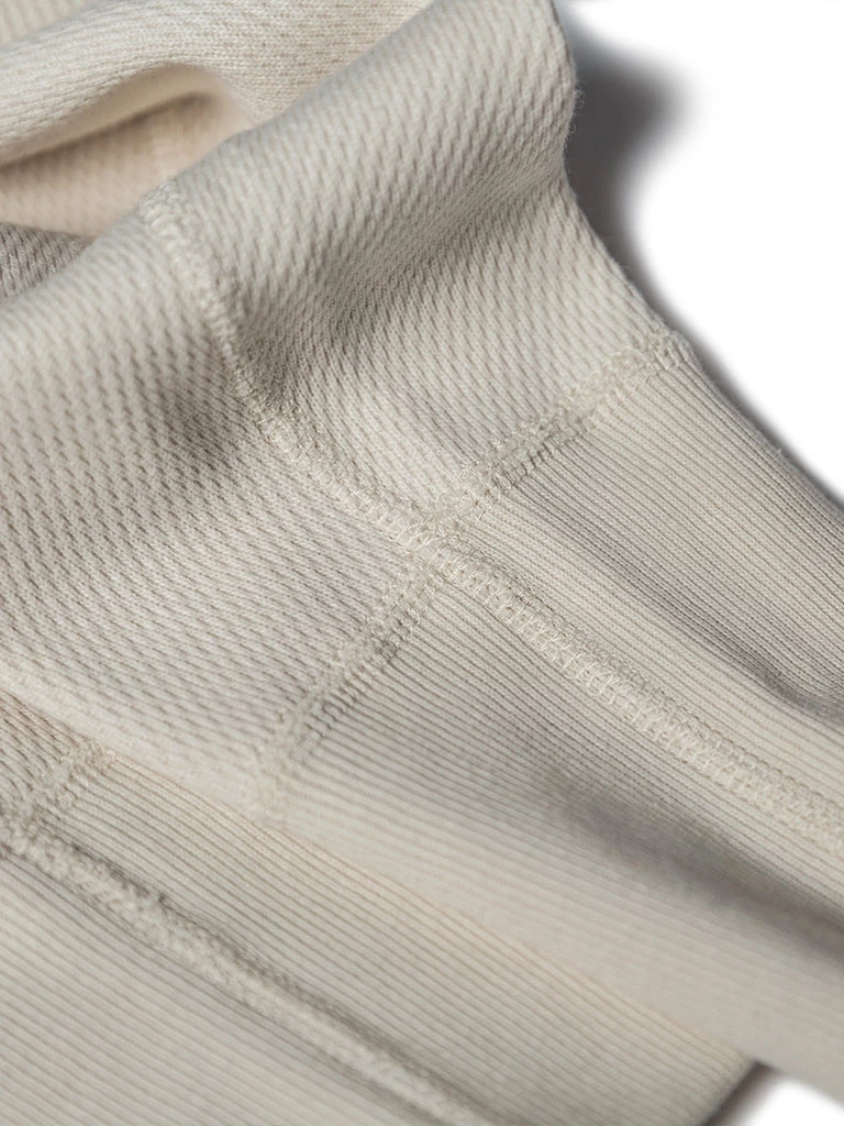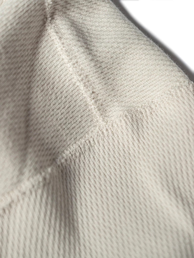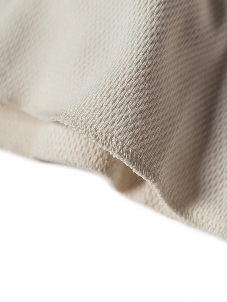 This t-shirt aims to design for rider’s underwear or sports bottoming shirts. Slim tailoring, Including the collar, the armpit is just fit, making it easy to wear jackets and coats. The fabric uses a 14 oz heavyweight Raschel waffle, which produces extra breathability and heat preservation compared with ordinary waffle knitted fabrics. This undershirt is very weighty, comparable to the sweatshirt’s wind resistance, and has high washing resistance and strong stability. They will not become more extensive and loose after washing like ordinary waffle fabrics.