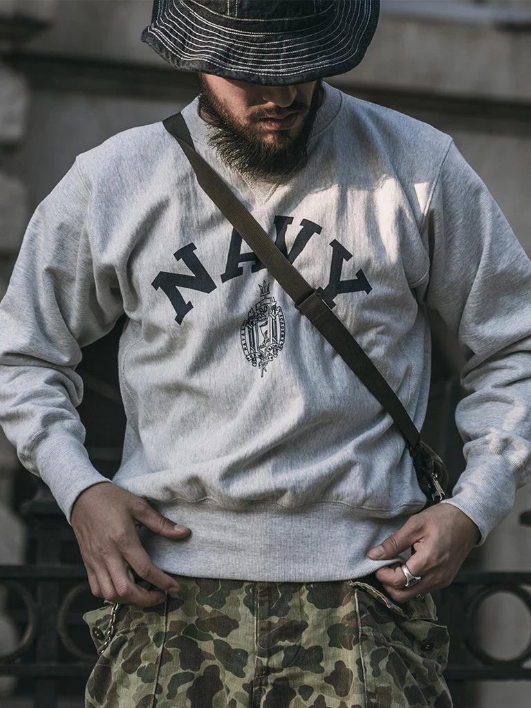 It is based on the Naval Academy training sweatshirt, the shoulders are wide, the cut is an inverted triangle, and the dressing effect is strong.
