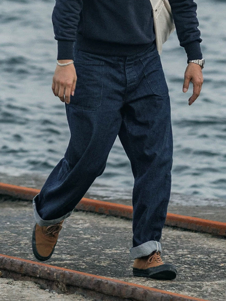 1917 USN Denim Work Pants is little-known early USN work clothes, even in magazines, are few items. This 1st generation USN denim jeans continue the characteristics of European work pants: V-shaped split at the back and buckle back. The hip has only one sticker pocket, not the symmetrical double pocket that became popular later; Wide legs, easy to move around.