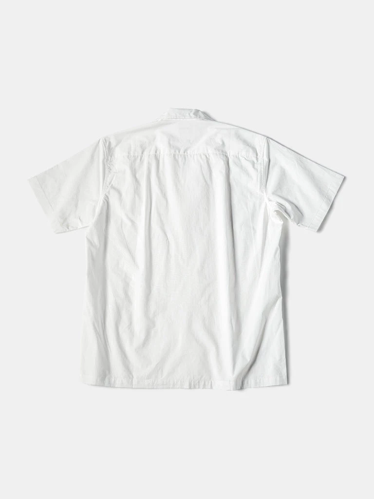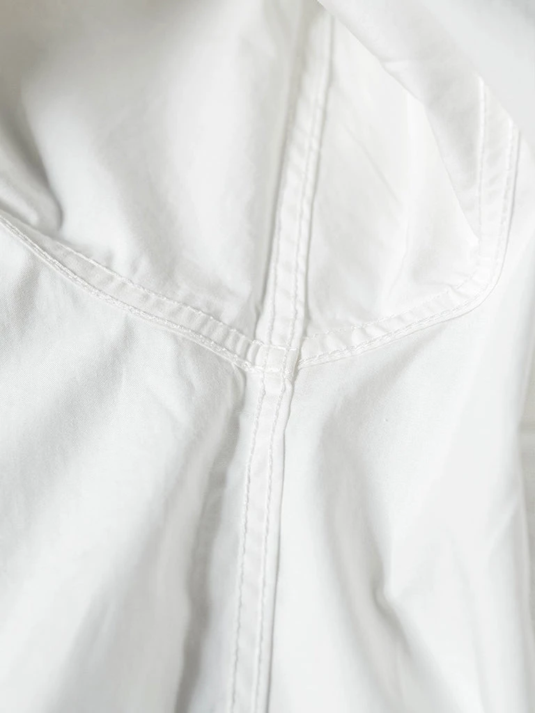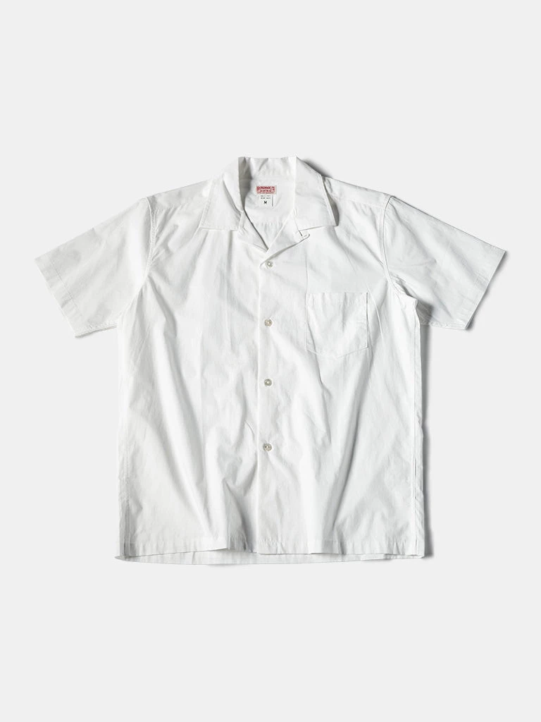 This classic Panama open collar shirt is made of cotton poplin fabric with natural shell buttons, has ivory white & dark gray two colors.