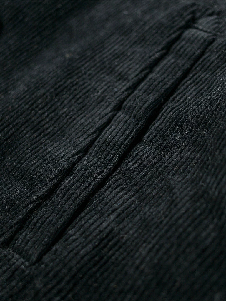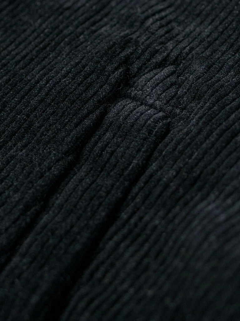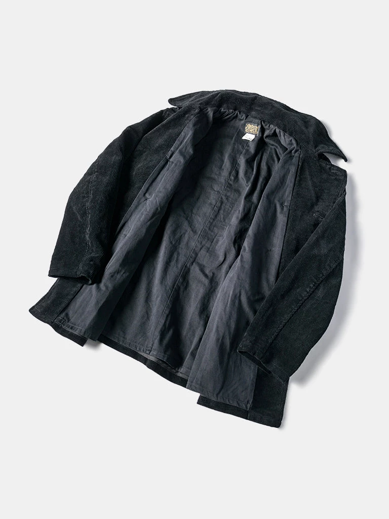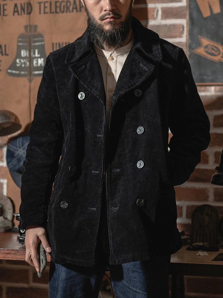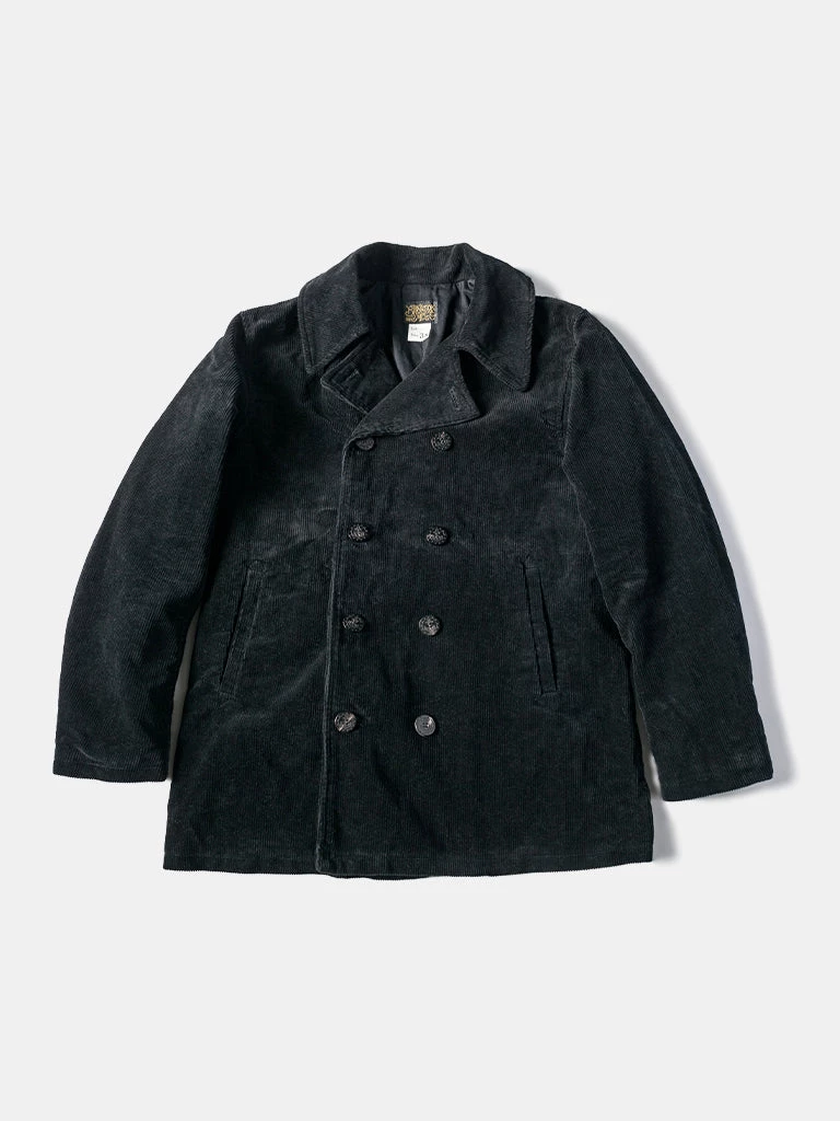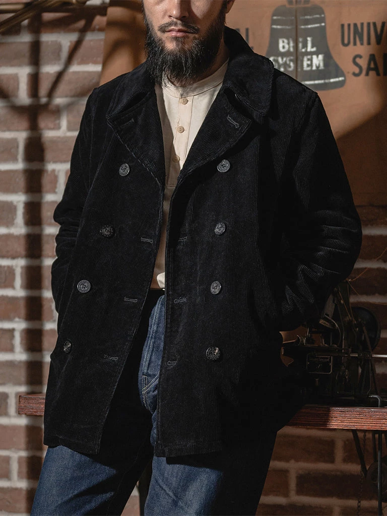 Bronson’s this peacoat is Based on a vintage “Montgomery” double-breasted peacoat from the late 1930s, it is made of custom-made heavy corduroy, and the fabric is crisp and reproduces the large lapel with a slight arc in the old time, which can easily create a standing collar style. The classic 10-button style, and the simple diagonal pocket are used to warm hands, and the natural horn button is used to create a retro atmosphere. The black cotton satin material is used in the interior, making it smooth and easy to wear and take off.