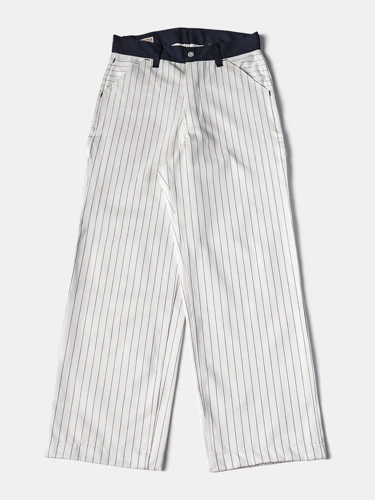 Based on 1950s split work pants, they are widely used by carpenters, railroad workers, and other types of mechanical maintenance workers. The pants are custom-made in 10.5 oz yarn-dyed herringbone twill (HBT) fabric, restoring the texture of the original.
