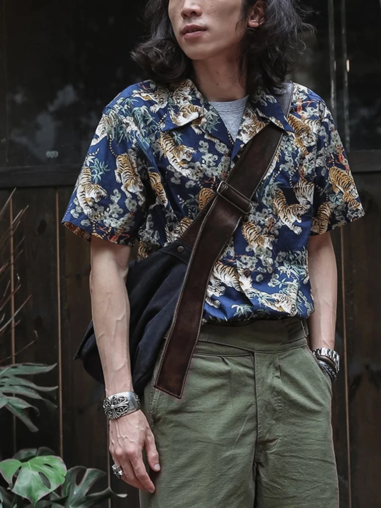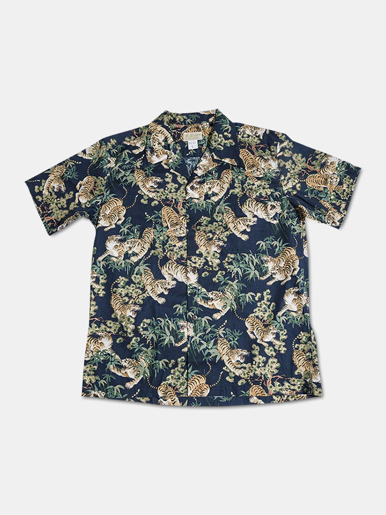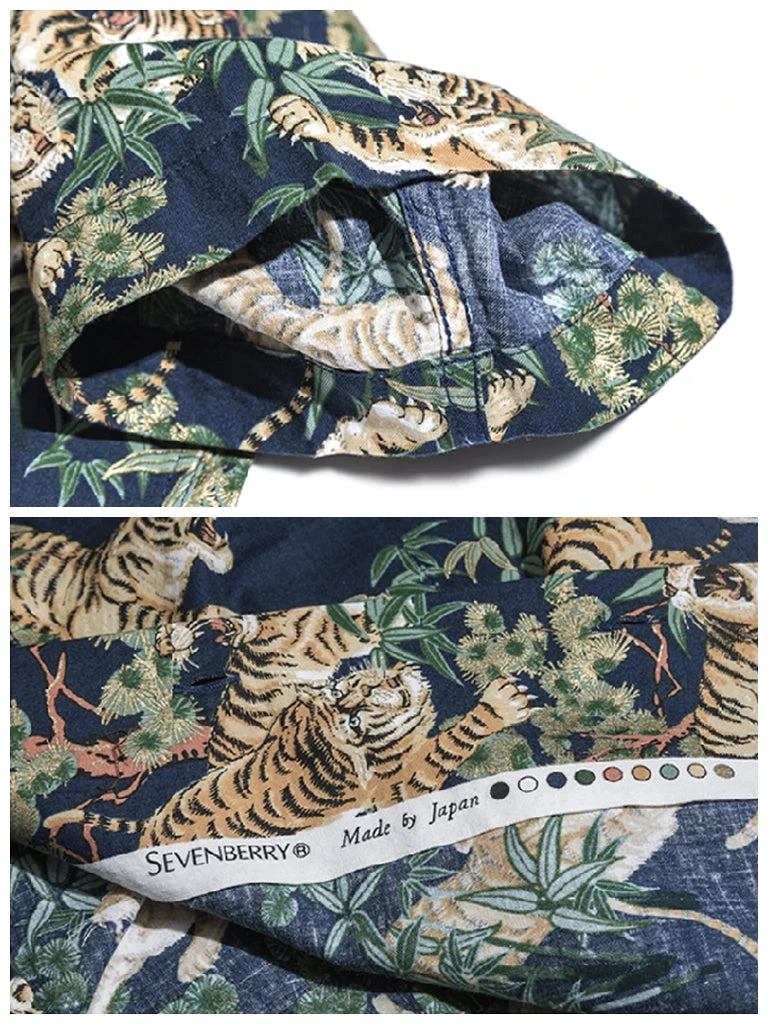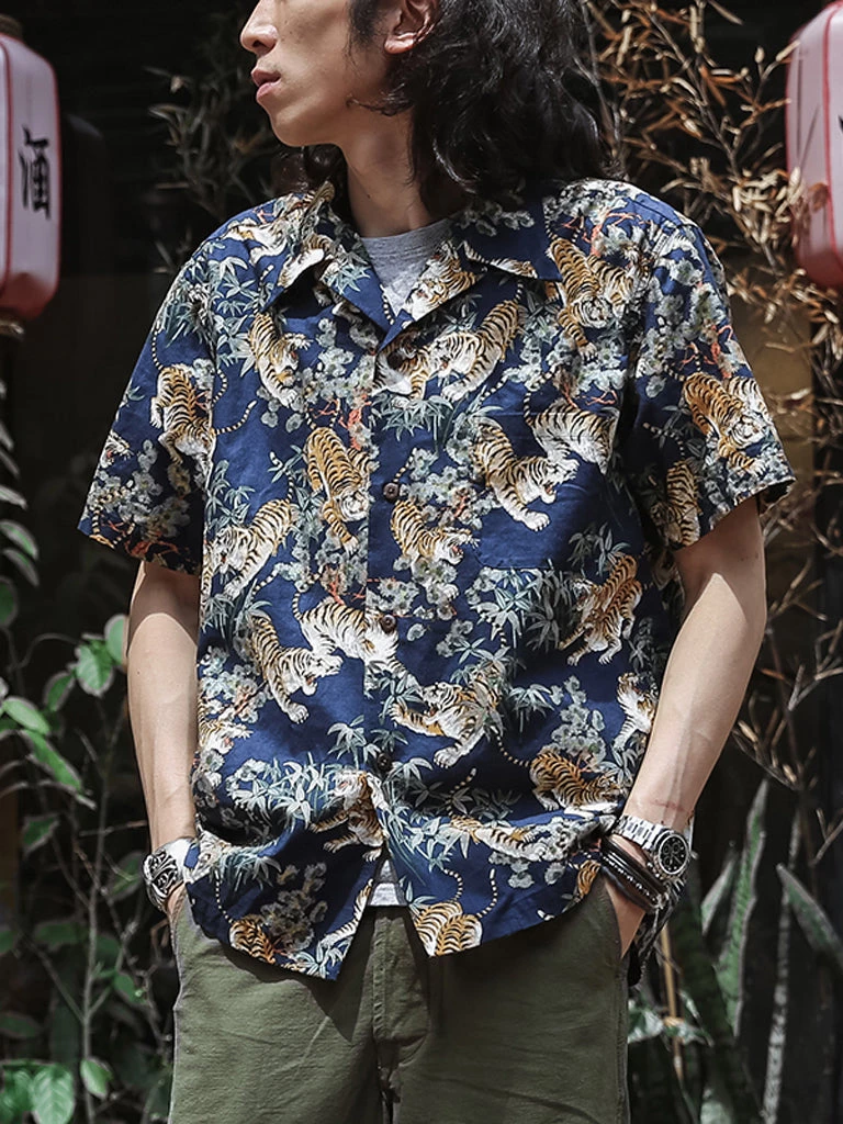 This Hawaiian shirt features Japanese ukiyo-e tiger & bamboo pattern prints.