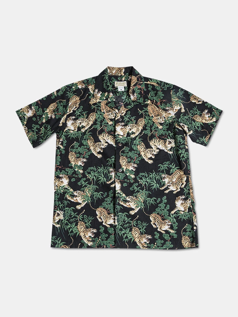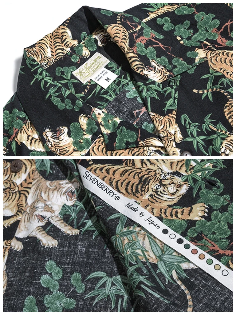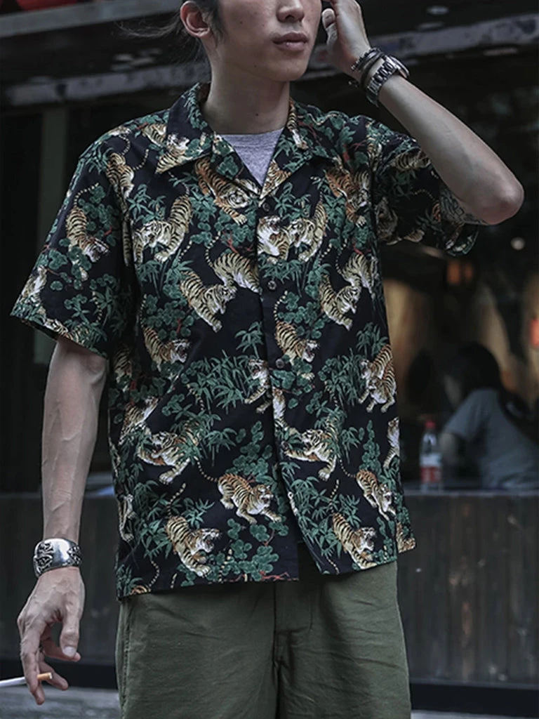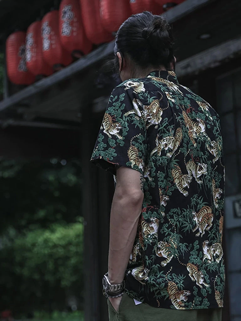 This Hawaiian shirt features Japanese ukiyo-e tiger & bamboo pattern prints.