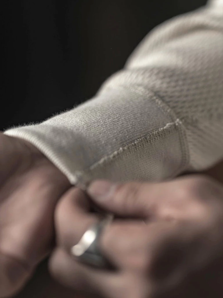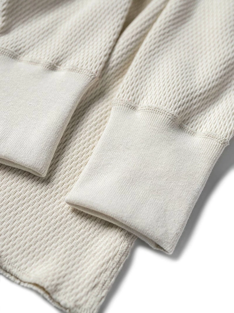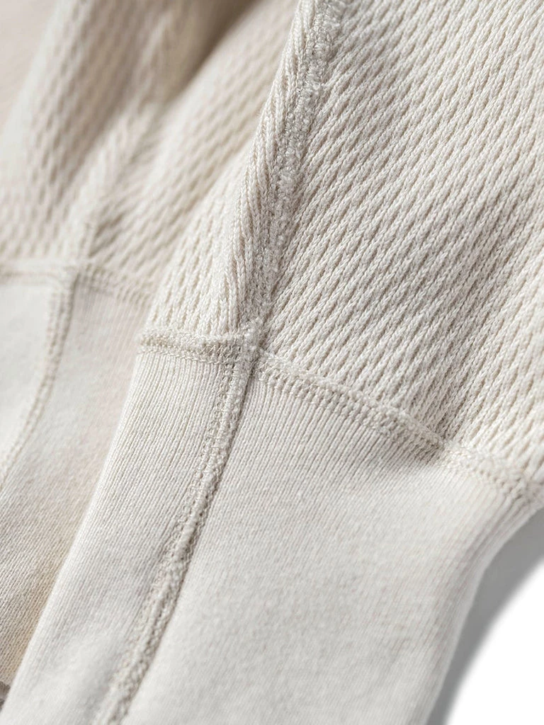 Old-time Raschel waffle underwear was very popular, but due to its low weaving efficiency and high cost, only a few Japanese and American manufacturers insist on making it today. This Raschel waffle underwear is made from quality US cotton and made on a vintage loom. It has the same texture as the original version but is better and more comfortable to wear.