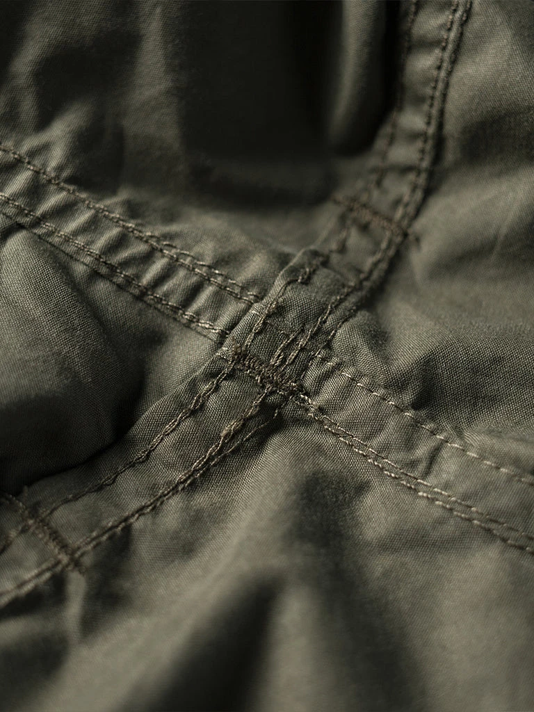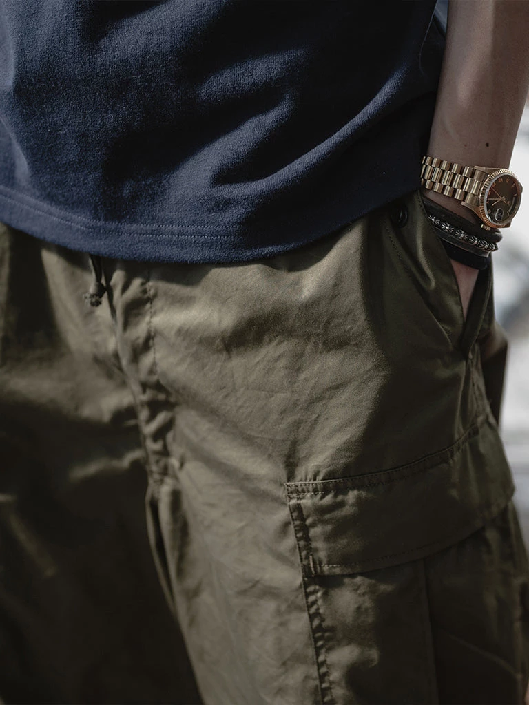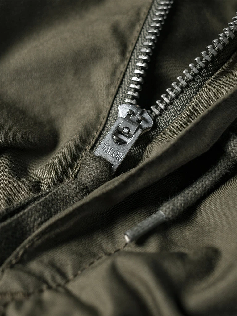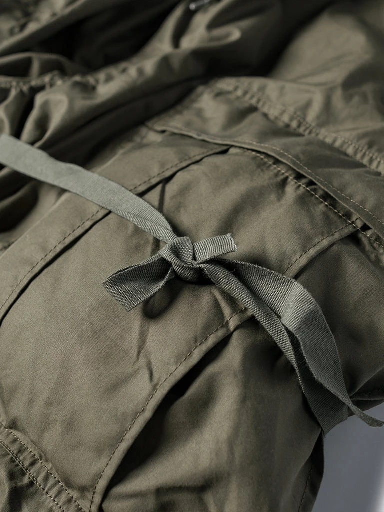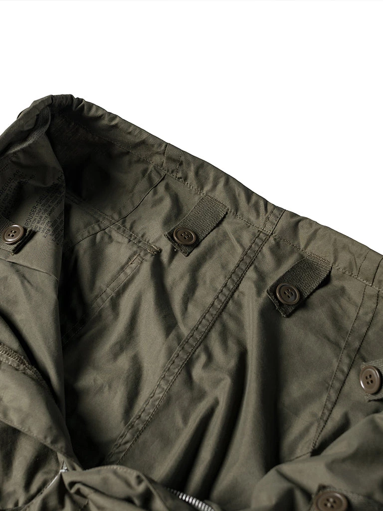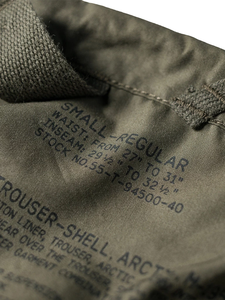 Our M-1951 arctic trouser shell is 50% cotton and 50% nylon. Its fabric is not waterproof—excellent air permeability, more suitable for spring and summer wear. The pockets of the original version have no pocket cloth and cannot store things. We have added pocket cloth to retain the storage function like regular pants.