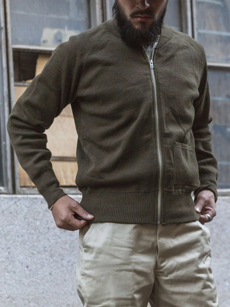 Its appearance is very low-key, early OD color is a yellowish olive green, and some even close to brown, zipper closure is characteristic. You should know that in the military uniform that pays attention to efficiency, it is often to choose the pullover,but the C-2 is still arbitrarily using a zipper, the front has a pocket to place small objects, similar to the baseball sweater’s knitted thread collar design, wearing an unexpected spirit.