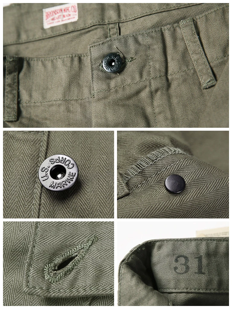 - 10 oz herringbone twill (HBT) fabric, color OD7, 100% cotton