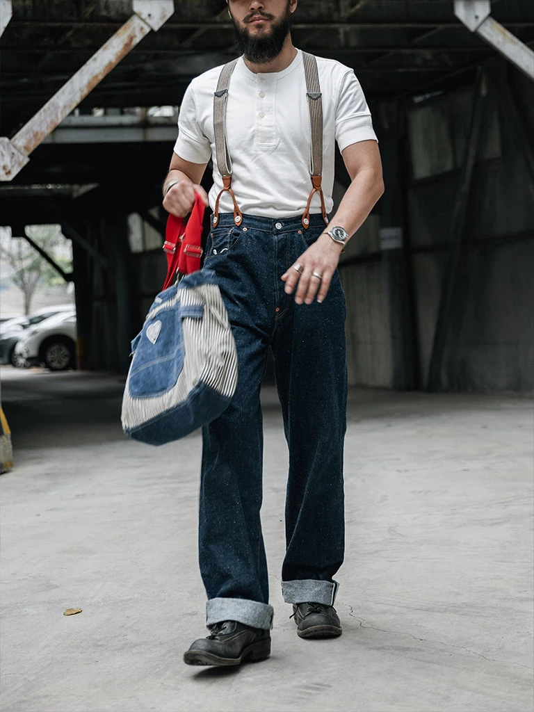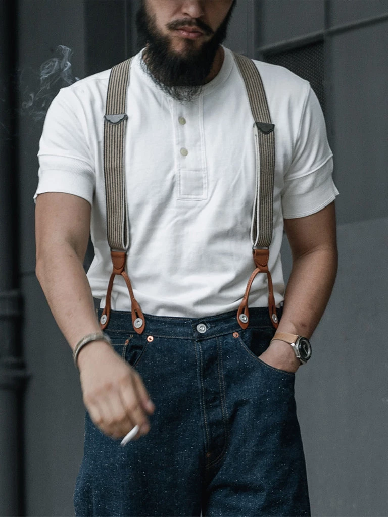 This henley t-shirt is based on a vintage henley t-shirt from the 1880-1920s, which features a wide front placket and threaded cuffs. It is made of heavyweight 9.7 oz. cotton fabric, which has a great texture, is comfortable to wear, and it will look more retro after long wear and multiple washes.