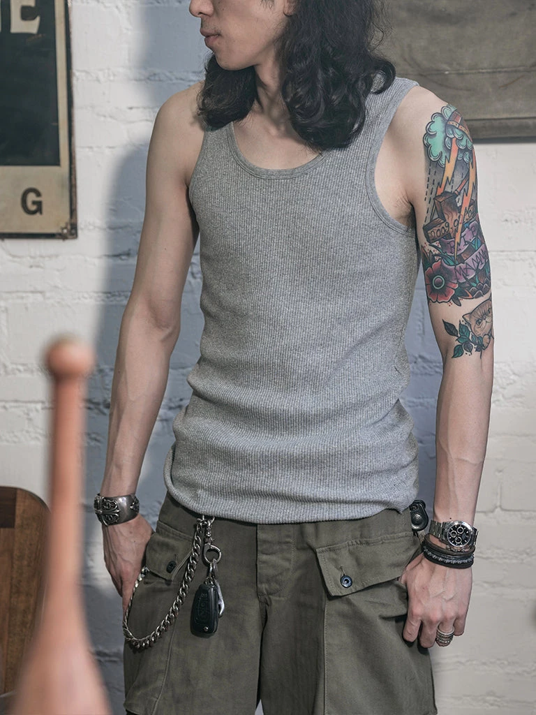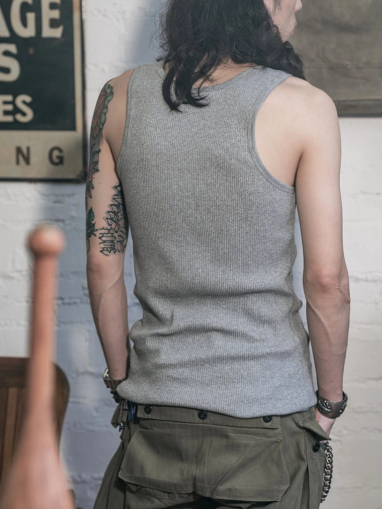 This tank top is made of heavyweight 10.5 oz cotton fabric. It has a good texture.