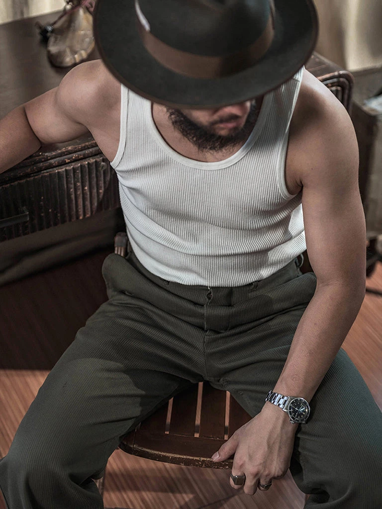 This tank top is made of 10.5 oz heavyweight cotton fabric. It has a good texture.