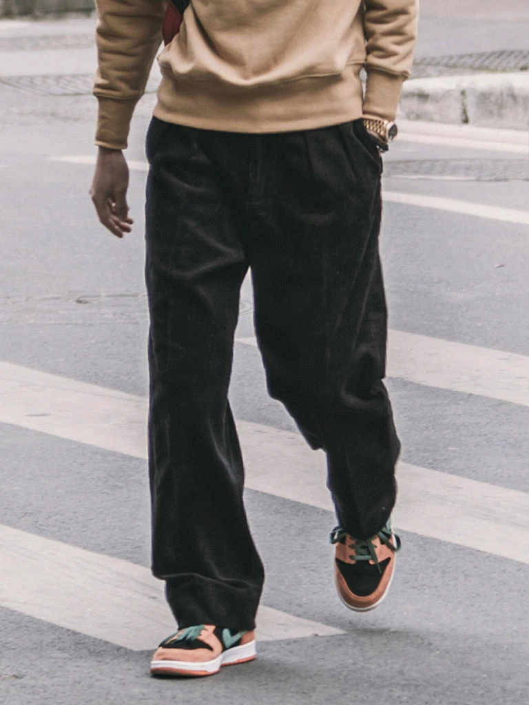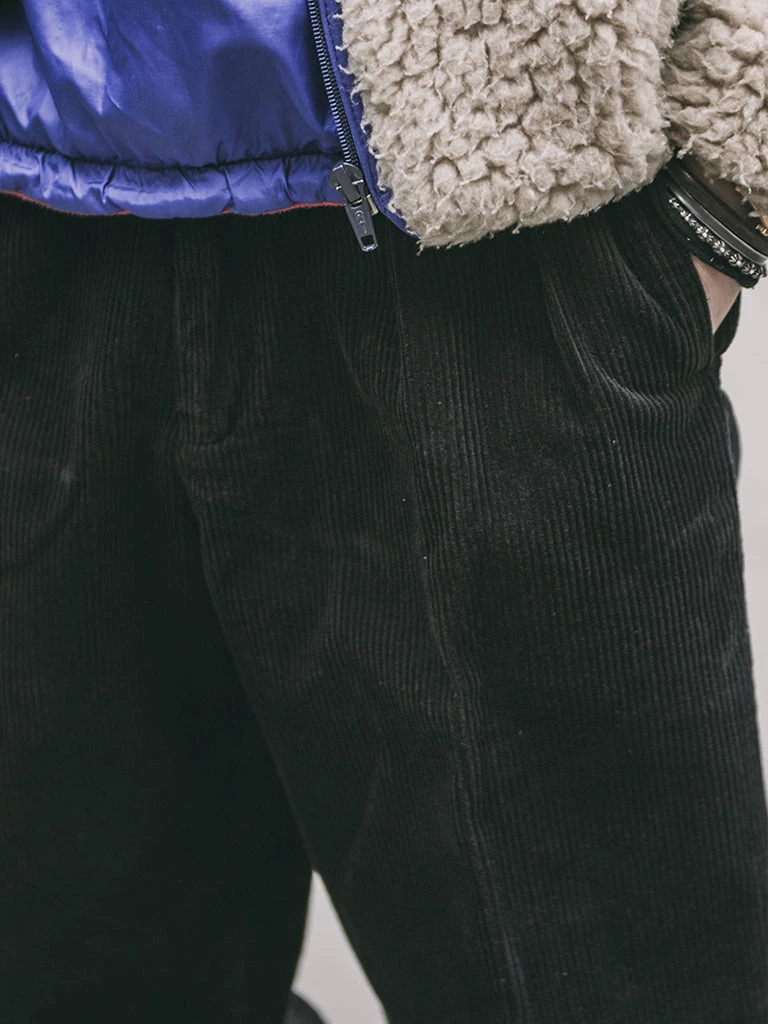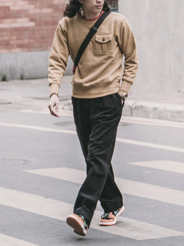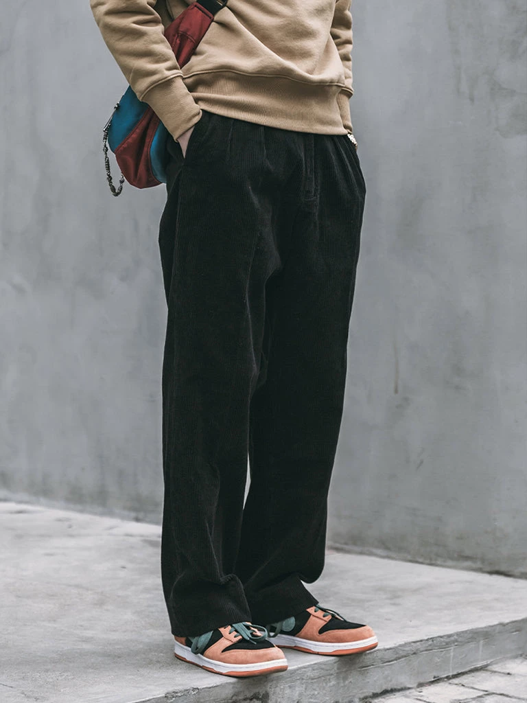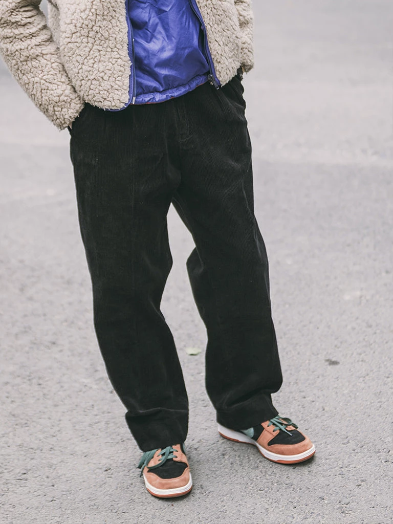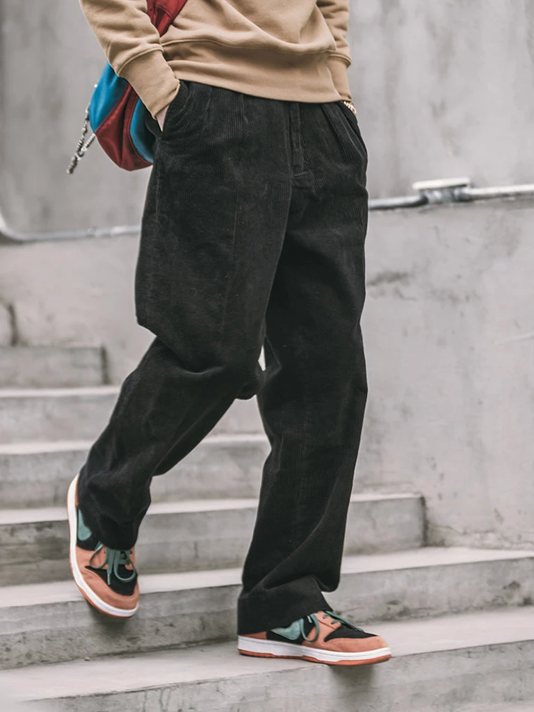 These corduroy pants are cut in the style of suit pants, Without any feeling of tightness, and it’s not too wide to look bloated.