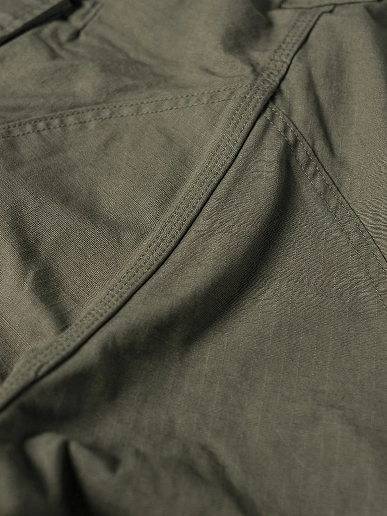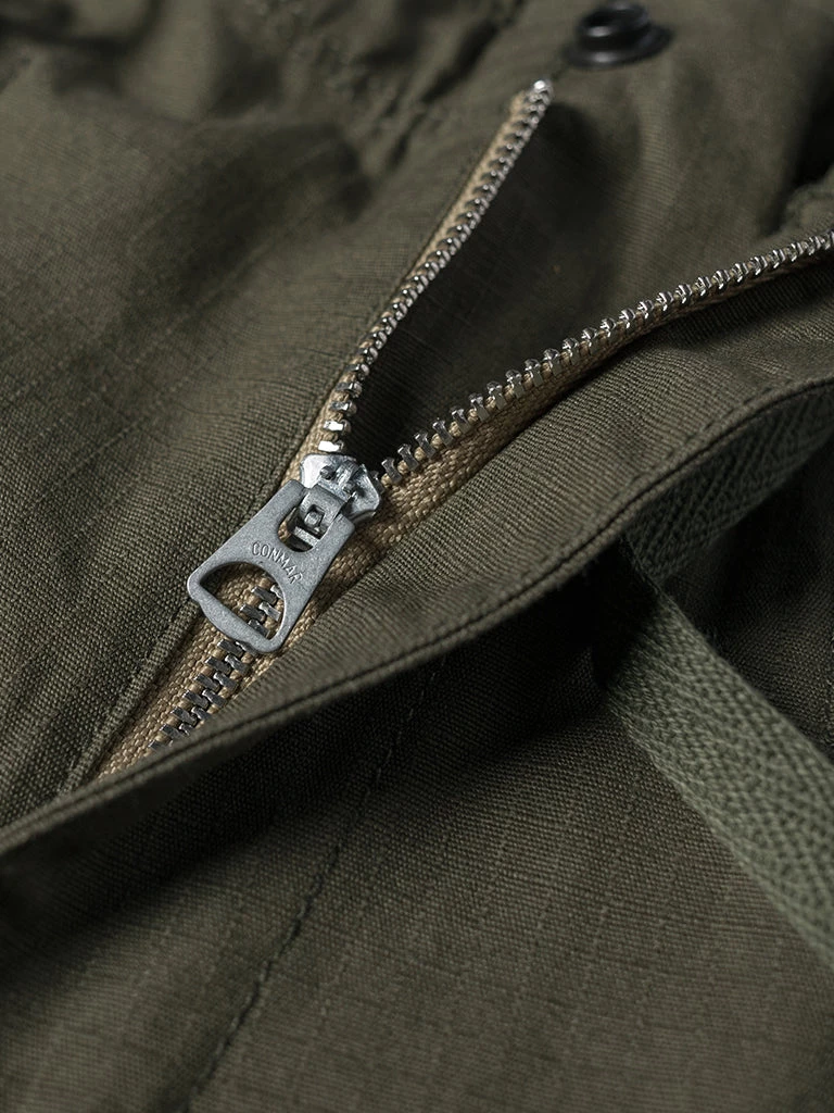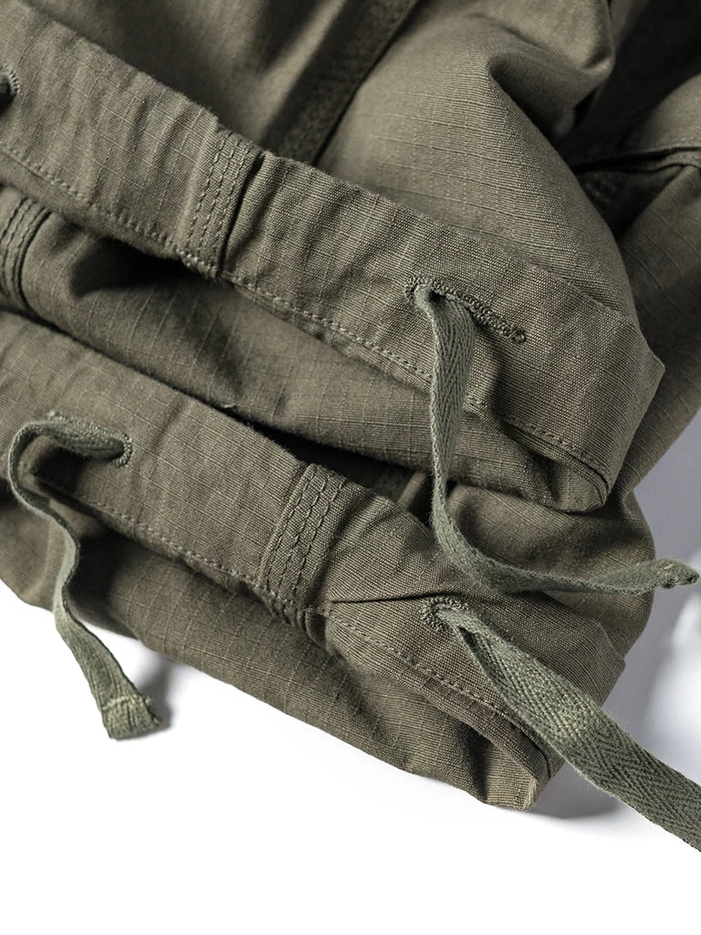 Inspired by the U.S. Army M42 Fatigue Trousers, cut from durable cotton ripstop. We have added new details, enlarged two side patch pockets, and Compartments are added to the pockets to facilitate sorting and storage. There are drawstrings at the waist and leg openings, which can be tightened if necessary. A circular arc patch was added to the hips for enhanced durability.