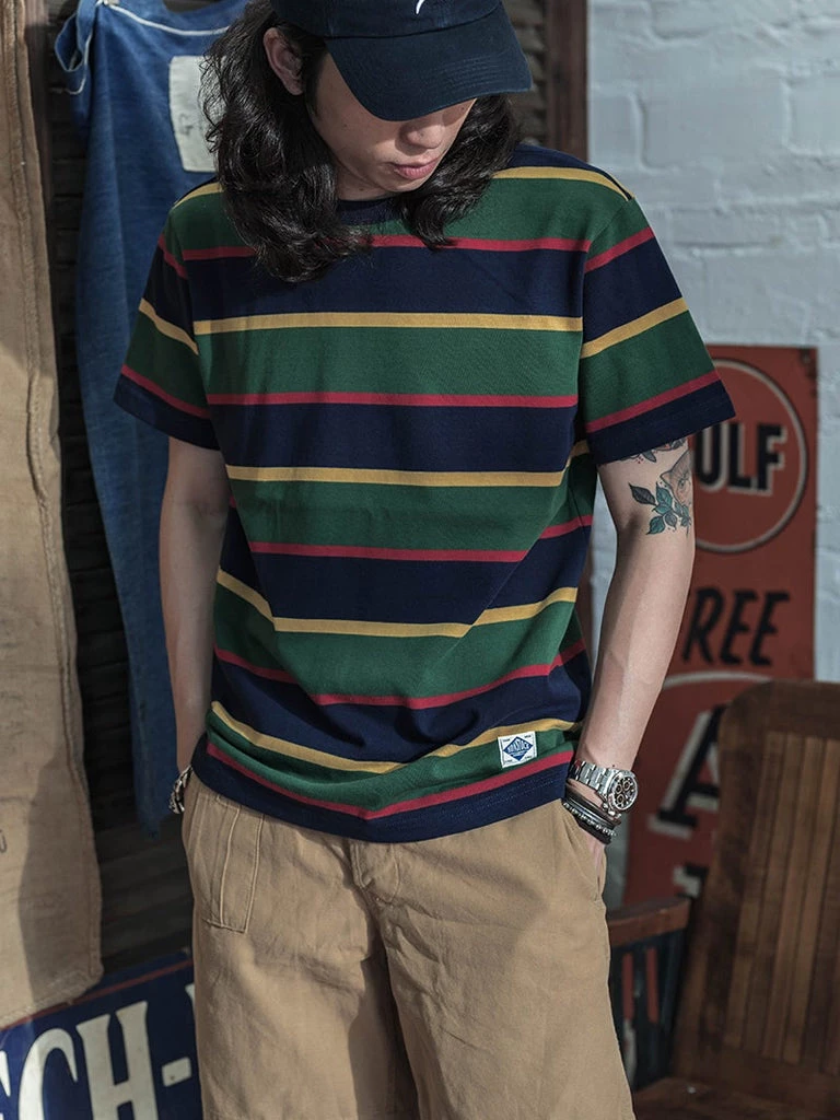 This is an IVY style stripe T-Shirt, made of 9.87 oz cotton, and use the classic IVY style color scheme, the fabric texture is good, soft and comfortable.