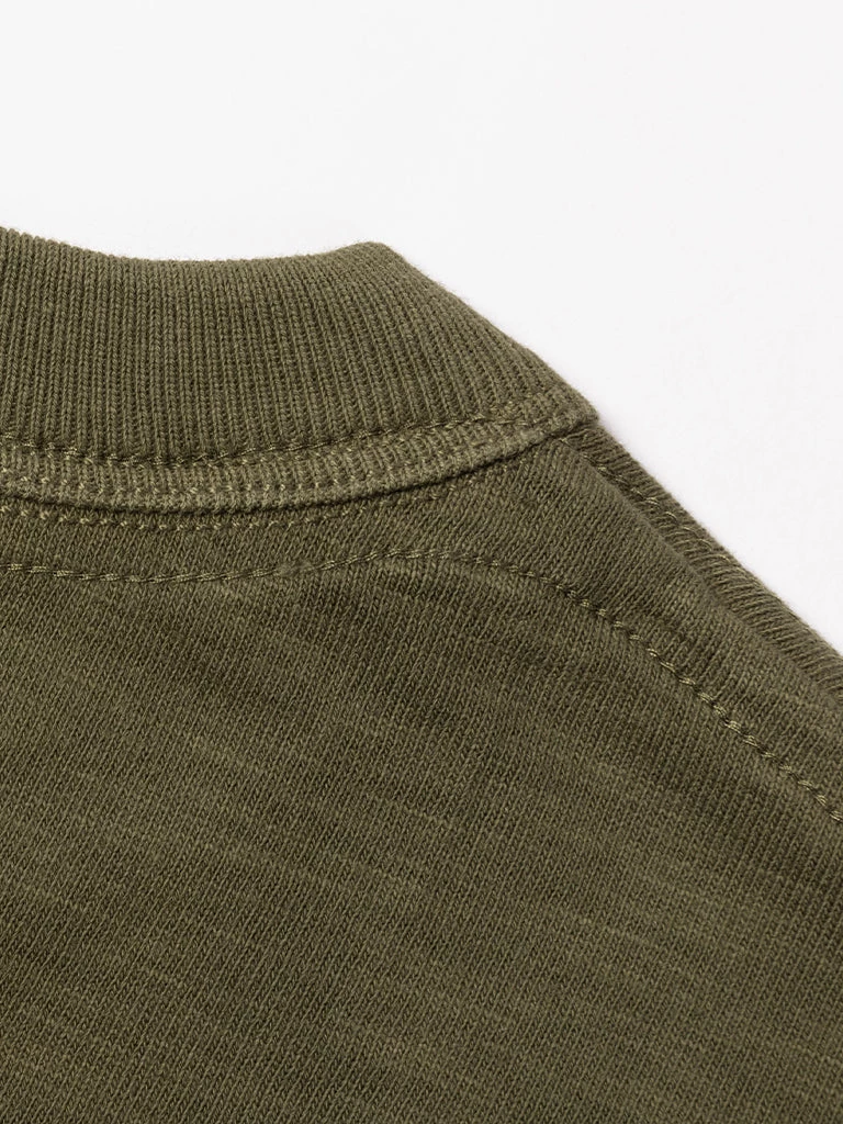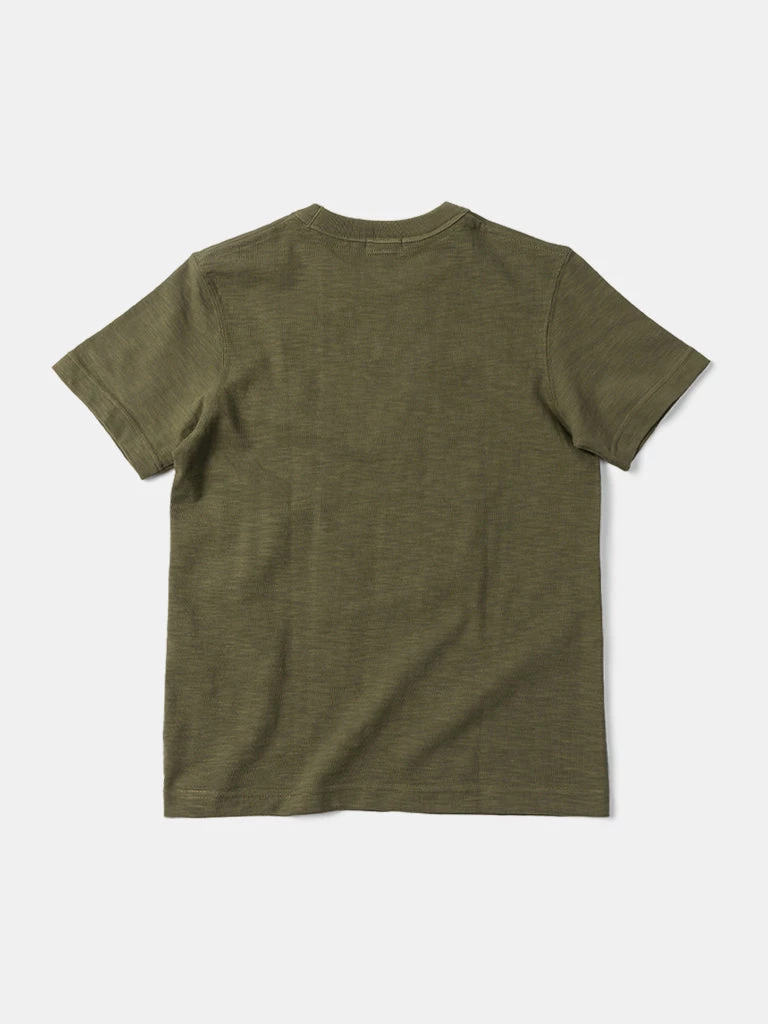 This t-shirt is based on a vintage 1950 American athletic t-shirt design. It is made of US cotton, tubular, no seam, and is finished with a V on the neckband for durability.