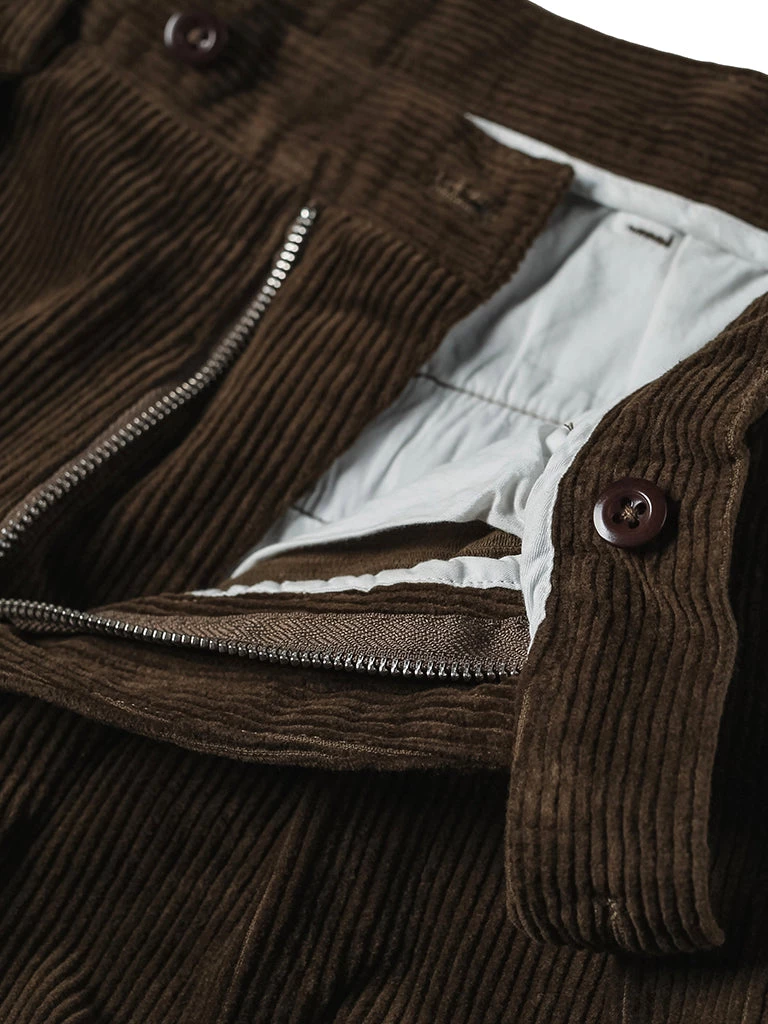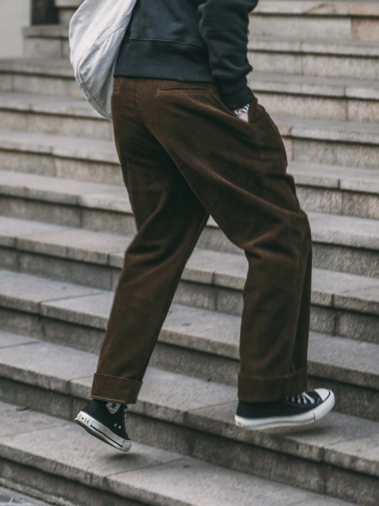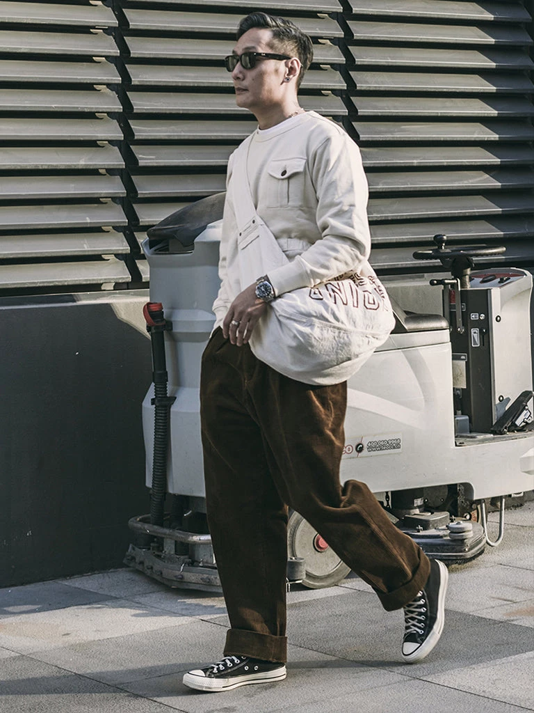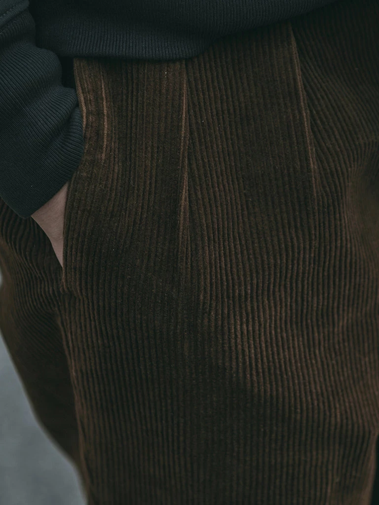 These corduroy pants are cut in the style of suit pants, Without any feeling of tightness, and it’s not too wide to look bloated.