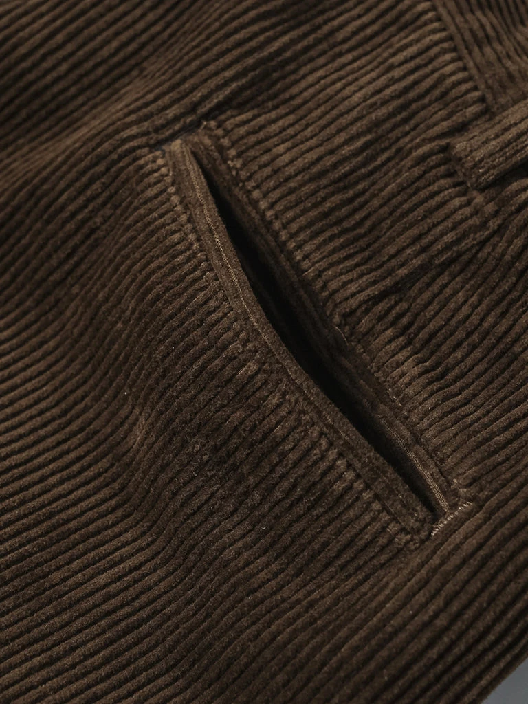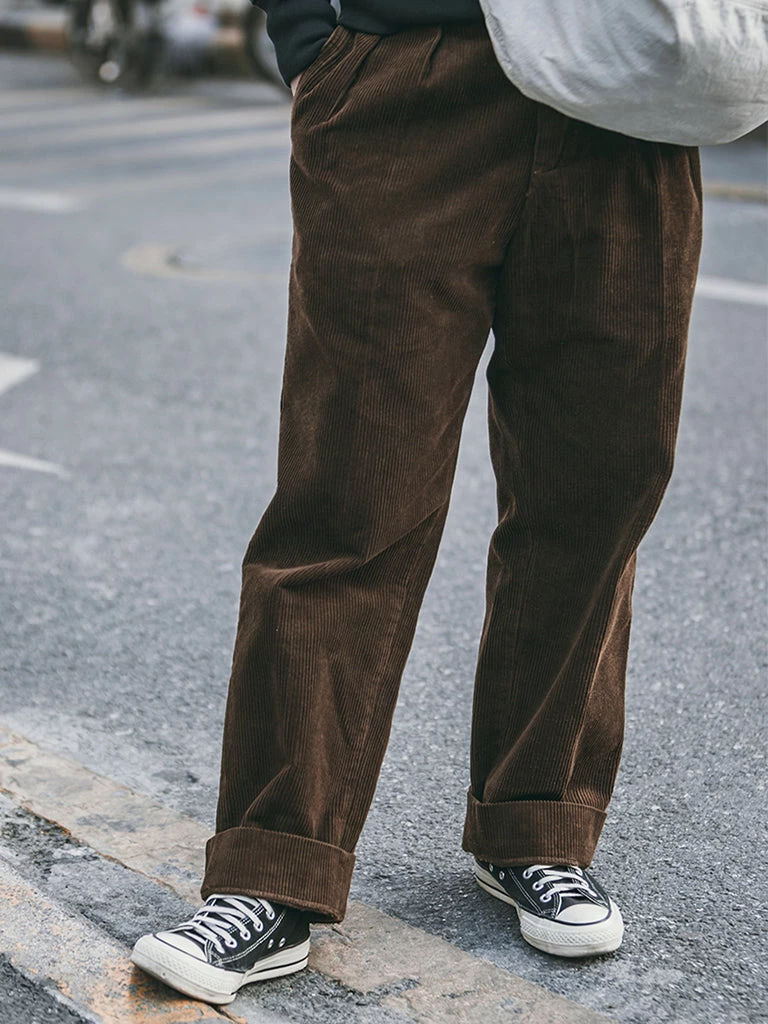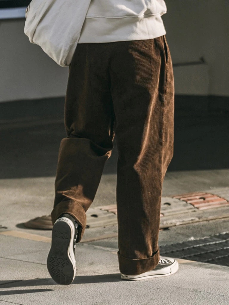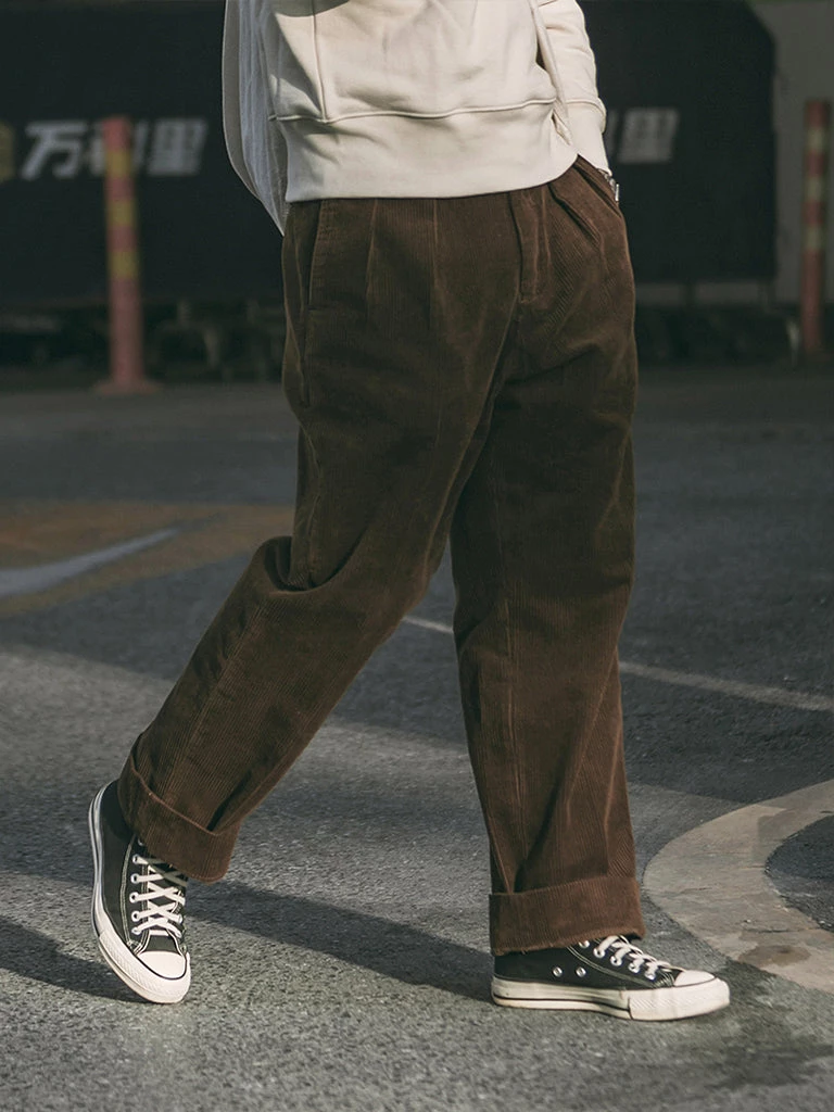 These corduroy pants are cut in the style of suit pants, Without any feeling of tightness, and it’s not too wide to look bloated.