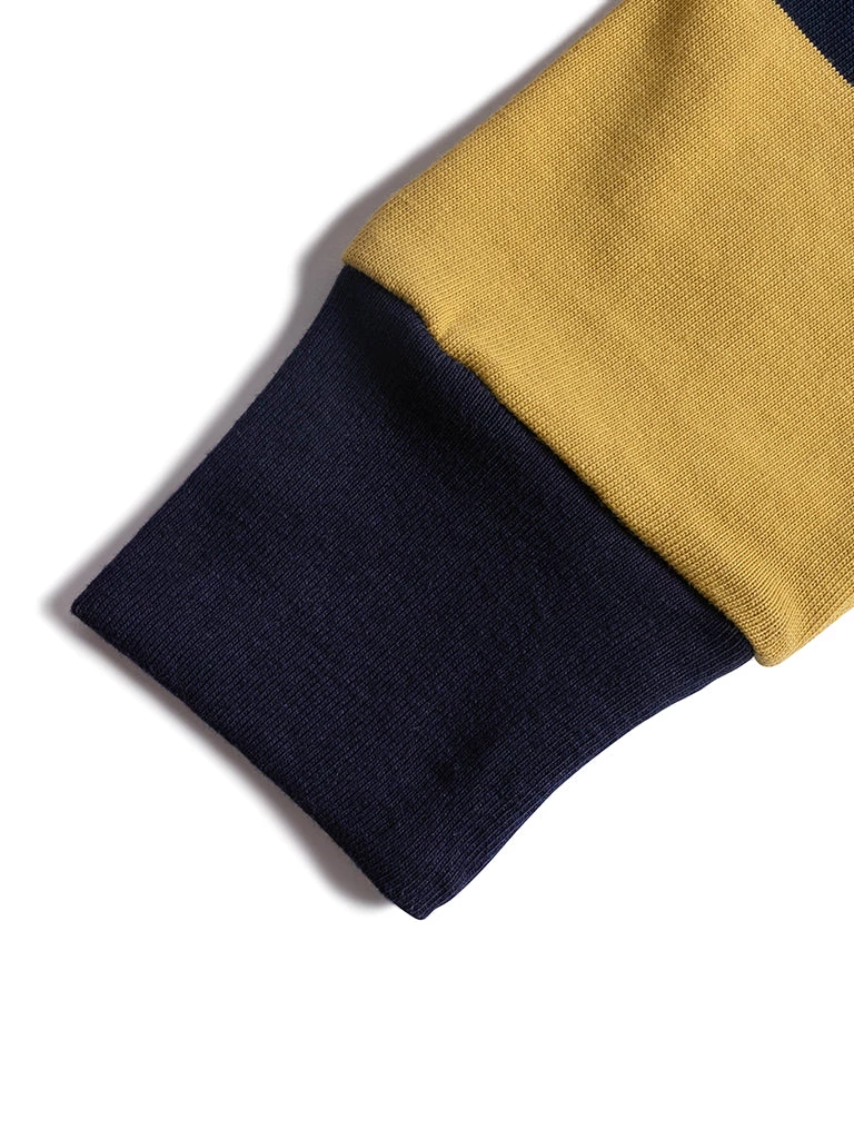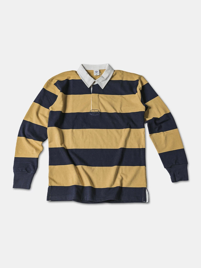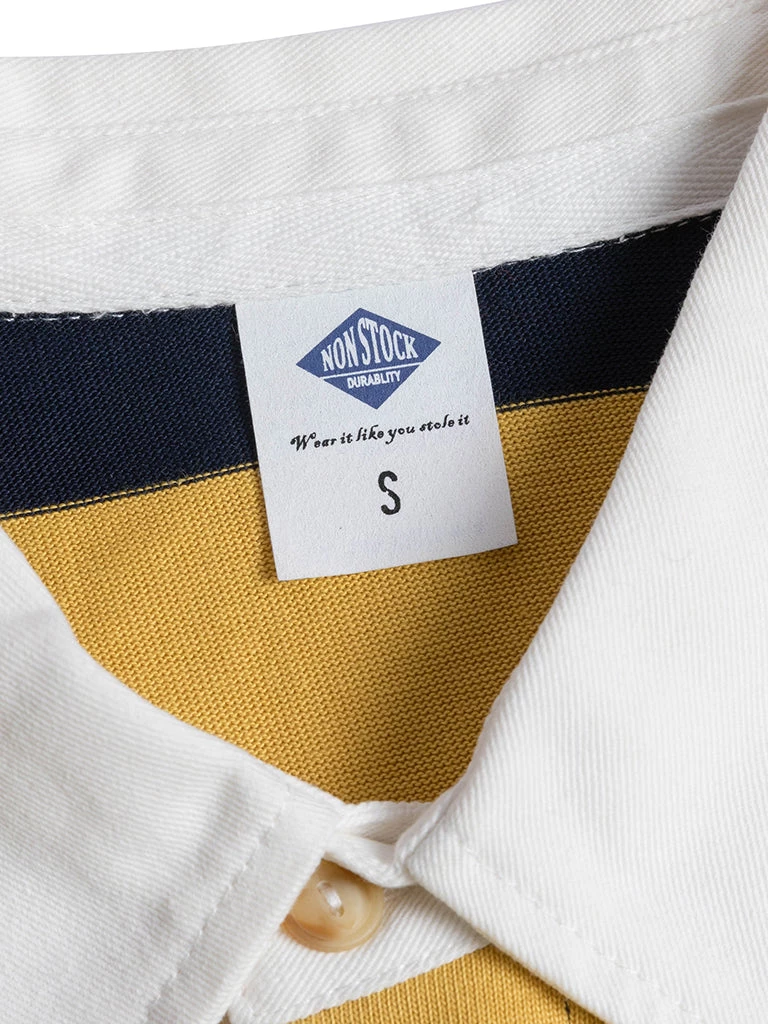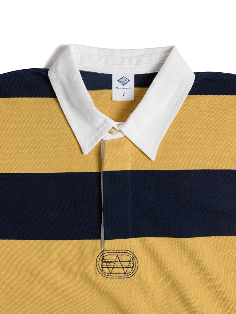 This rugby shirt is made of 10 oz cotton yarn-dyed fabric, and with athletic details and classic design, it captures the preppy yet sporty sensibility.