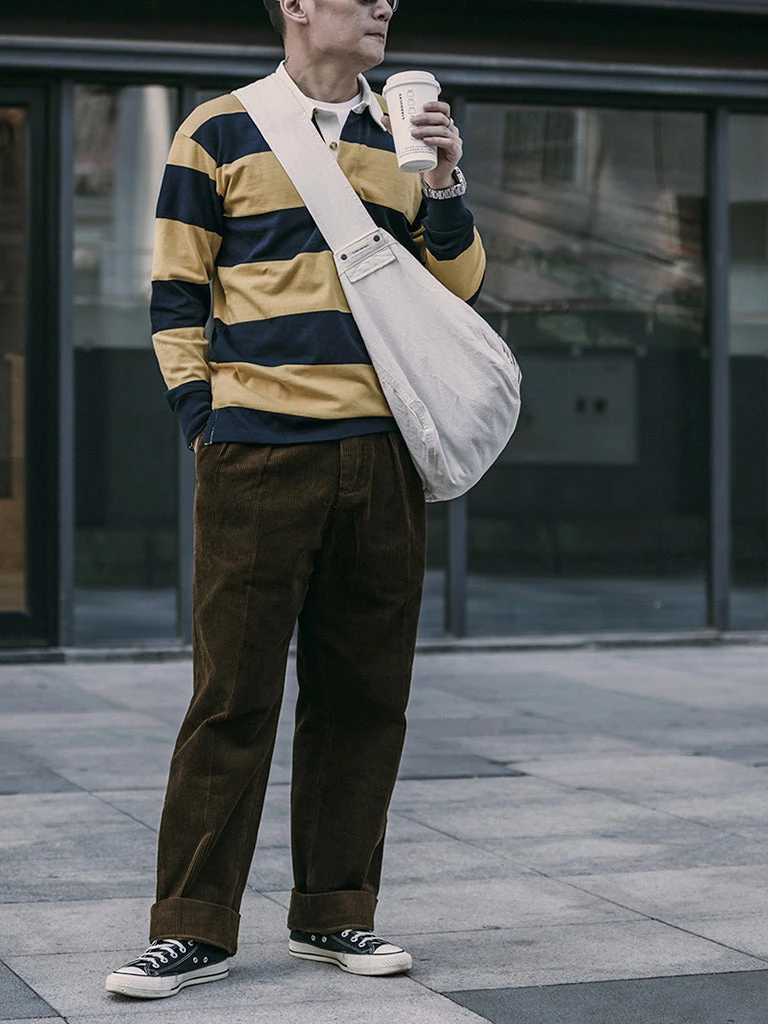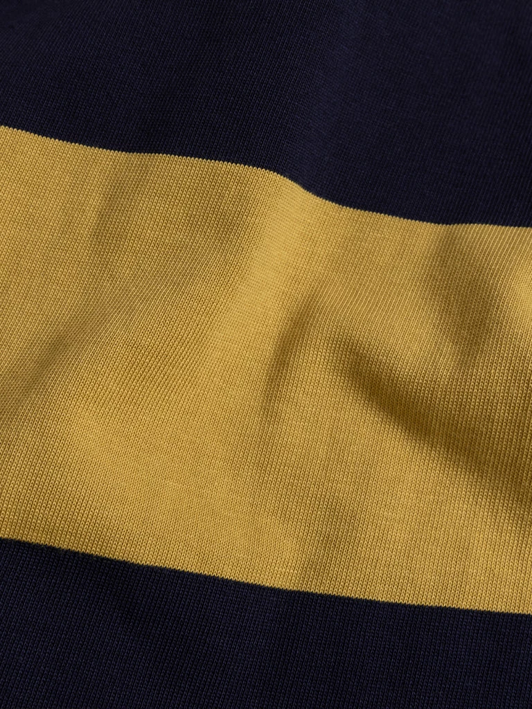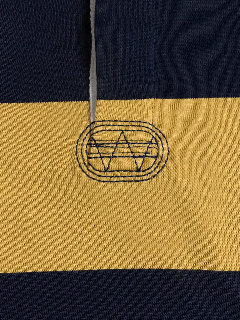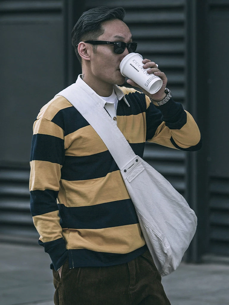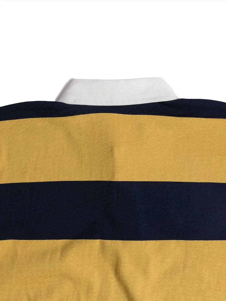 This rugby shirt is made of 10 oz cotton yarn-dyed fabric, and with athletic details and classic design, it captures the preppy yet sporty sensibility.
