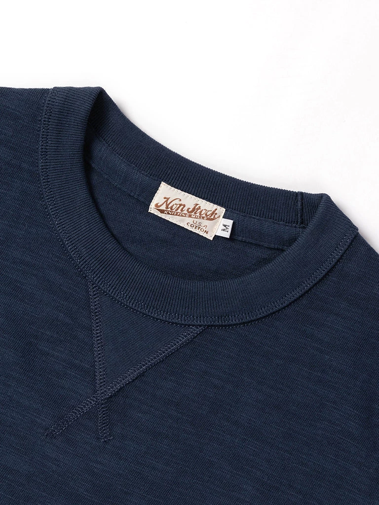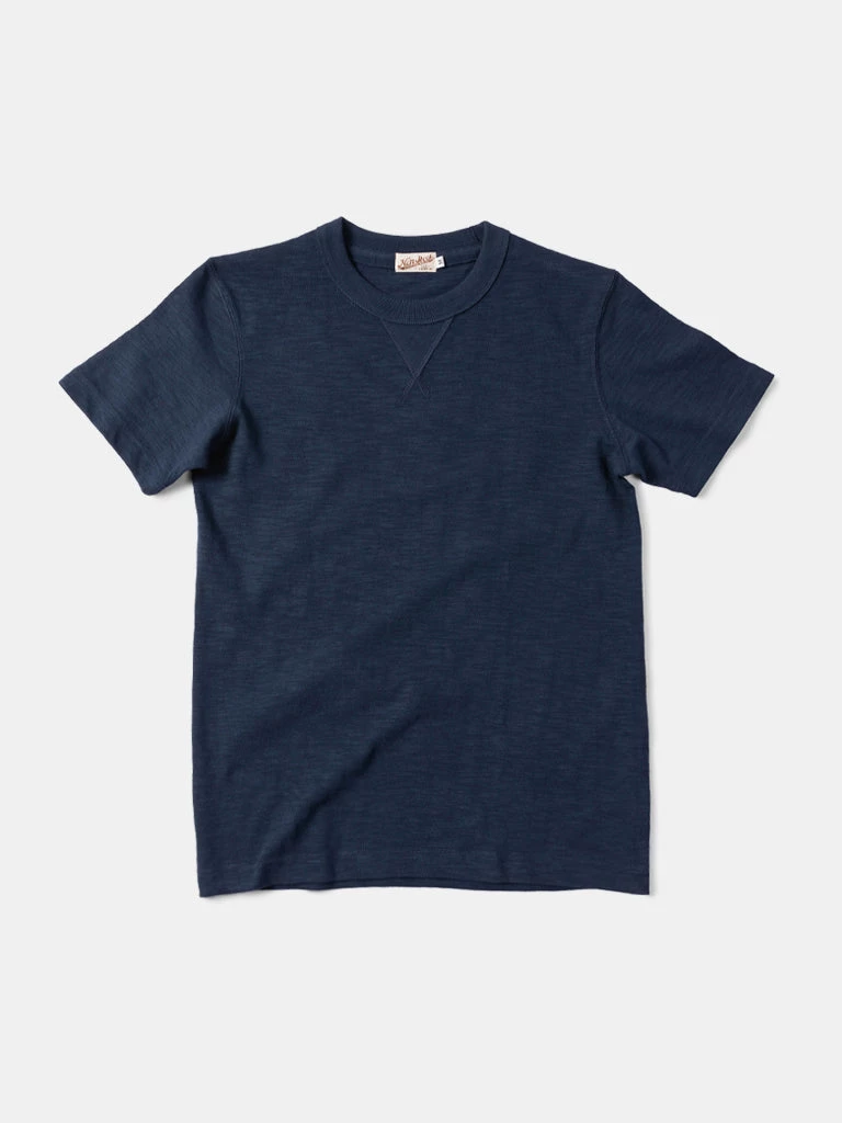 This t-shirt is based on a vintage 1950 American athletic t-shirt design. It is made of US cotton, tubular, no seam, and is finished with a V on the neckband for durability.