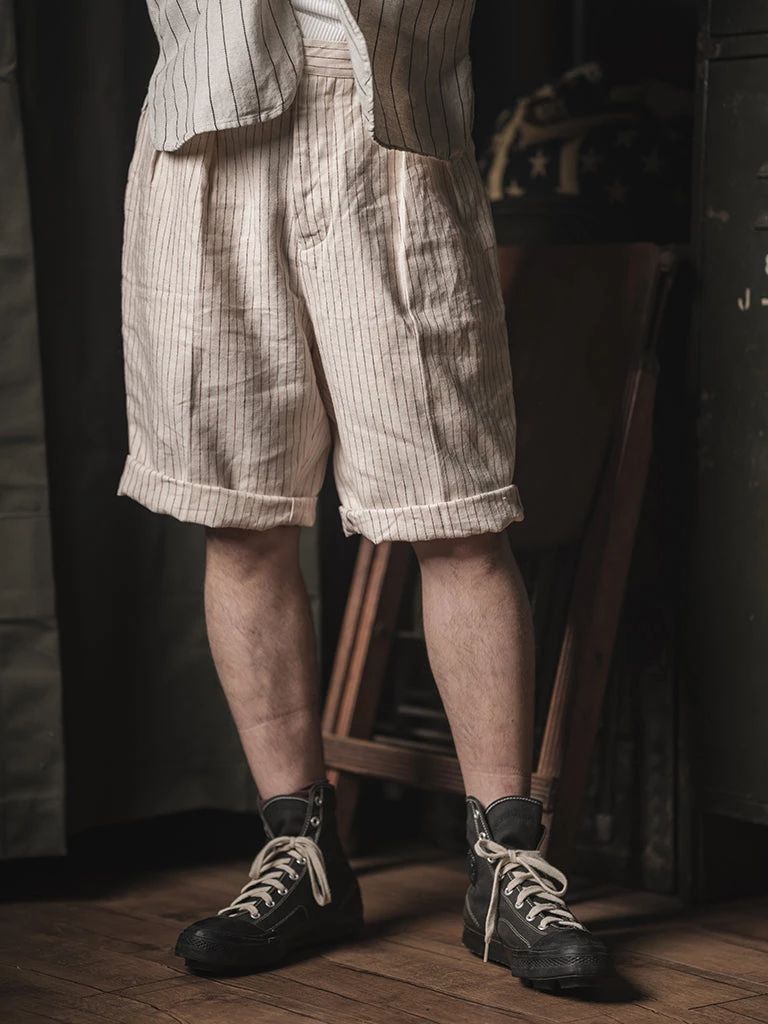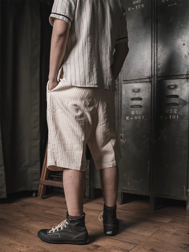 The shorts are made from thicker linen fabric. The linen fabric is custom made for good draping which makes it ideal for the summer. Breathability is very good and feels soft to the touch from the minute you put it on. The shorts are in a straight style which is very loose. The shorts are slightly longer than the knees, if necessary, rolling up the leg pants is also a good idea. Easy to pair with your favorite shirt.