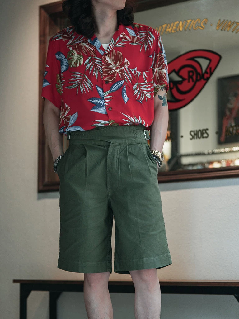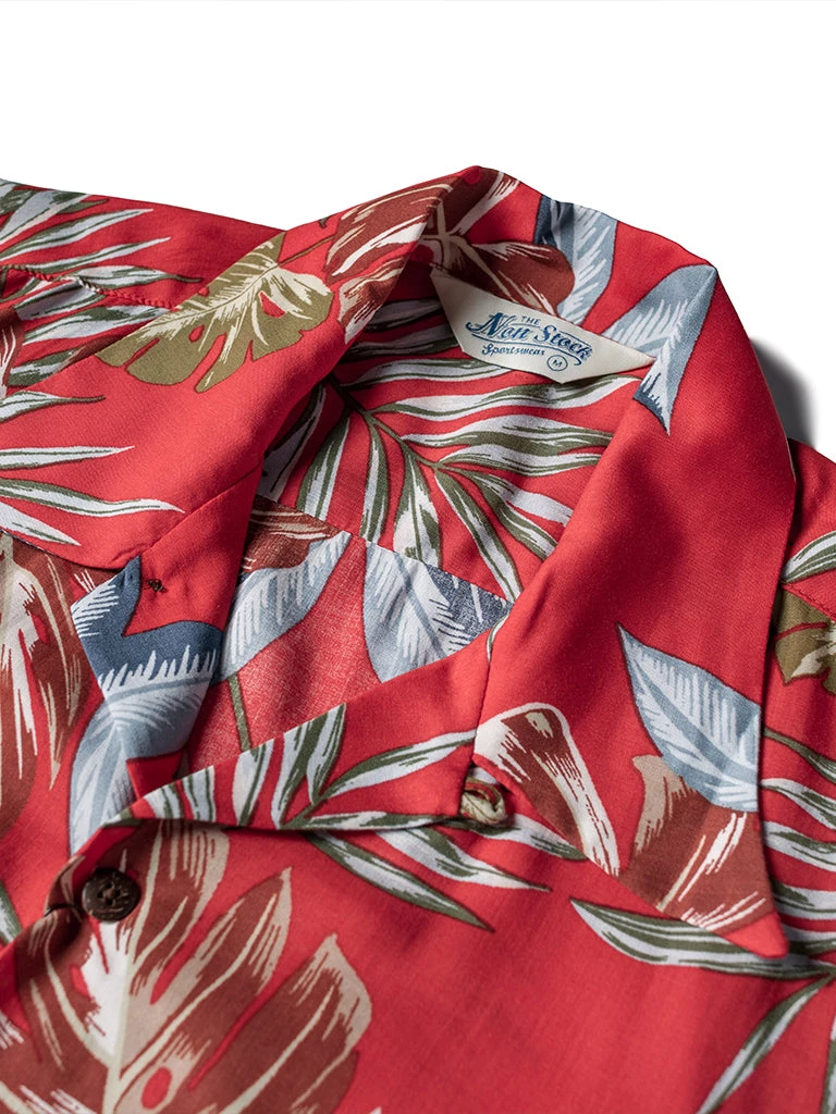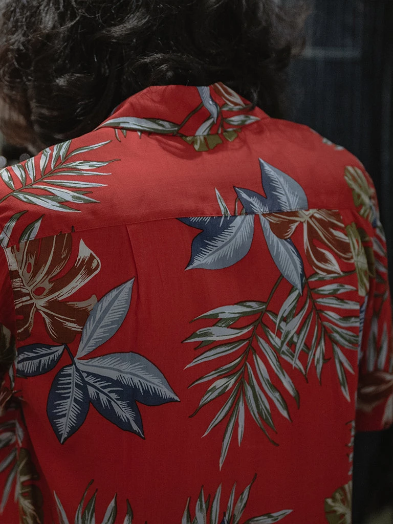The shirt’s design retains the authenticity and quality of Hawaiian shirts from the golden era of the style. It is made from rayon which has a tactile quality and liveliness to it like no other fabric, and with plants and flowers pattern. There’s a single chest pocket, a great place to put sunglasses or a similarly sized object. It can be worn alone or open over a tee.