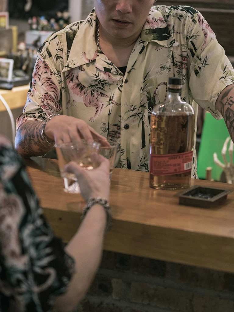 This Hawaiian shirt features Japanese Ukiyo-e Tiger & Bamboo pattern prints.