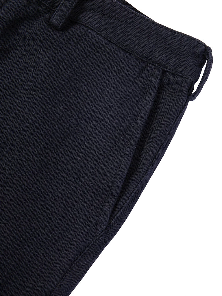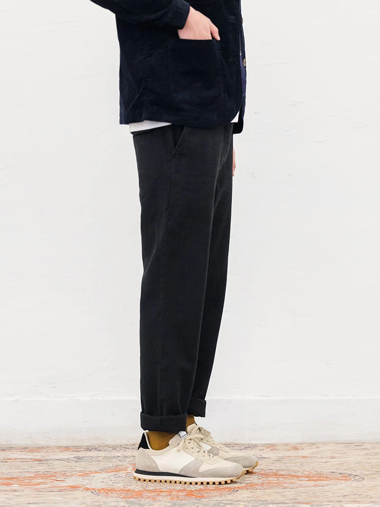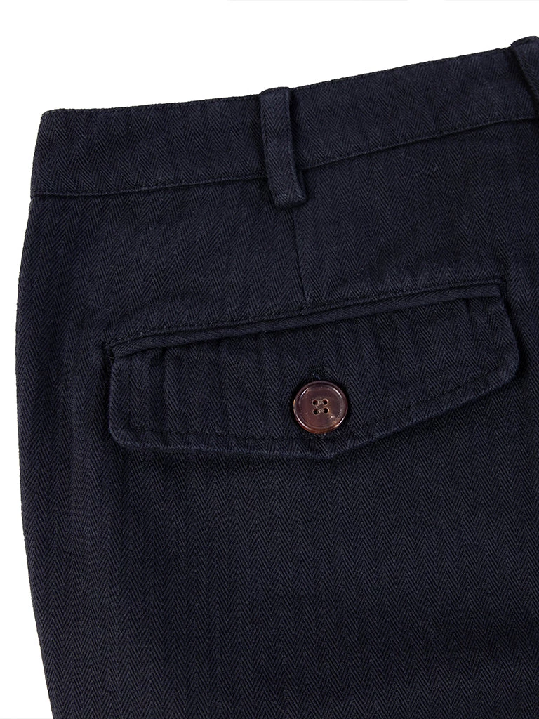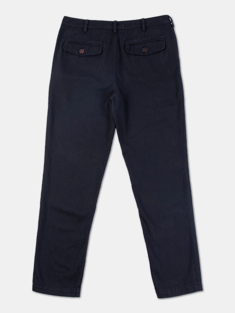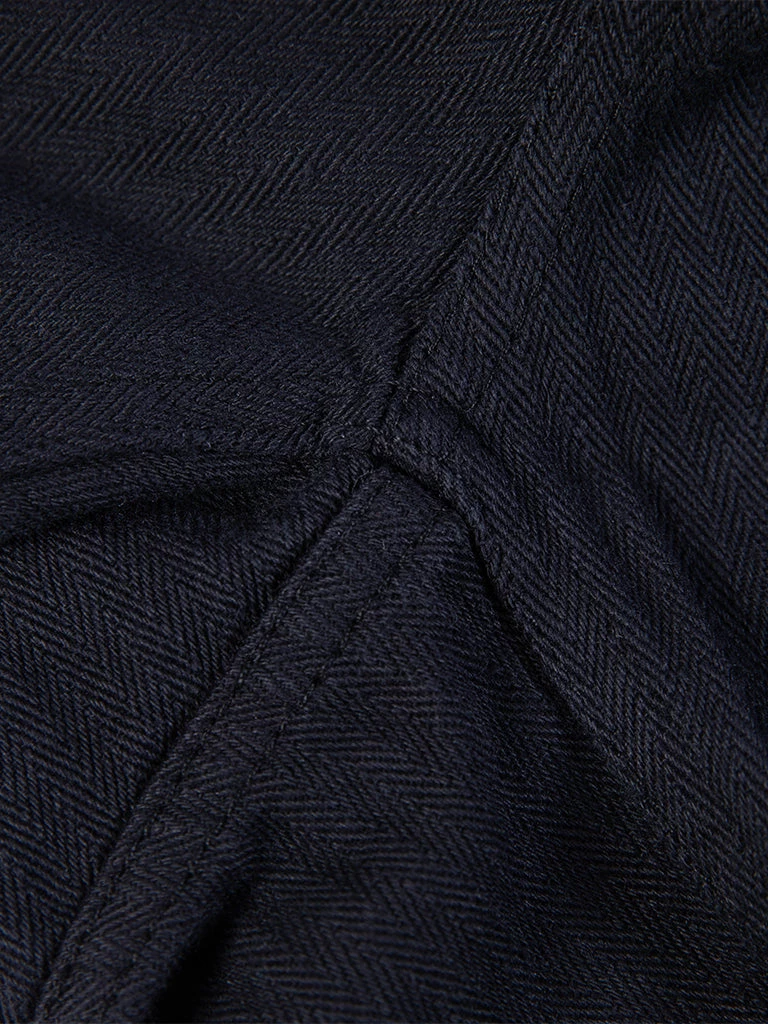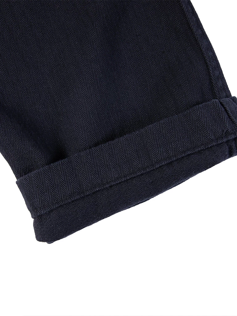 Based on the US Army officer chino pants in the 1940s. It’s made of black herringbone twill (HBT) fabric, high waist cut, and has undergone a slight garment wash process, with a slight vintage look. Each pair of trousers is made by artisans using antique sewing machines, including the Union Special 43200G machine made in the 1930s.